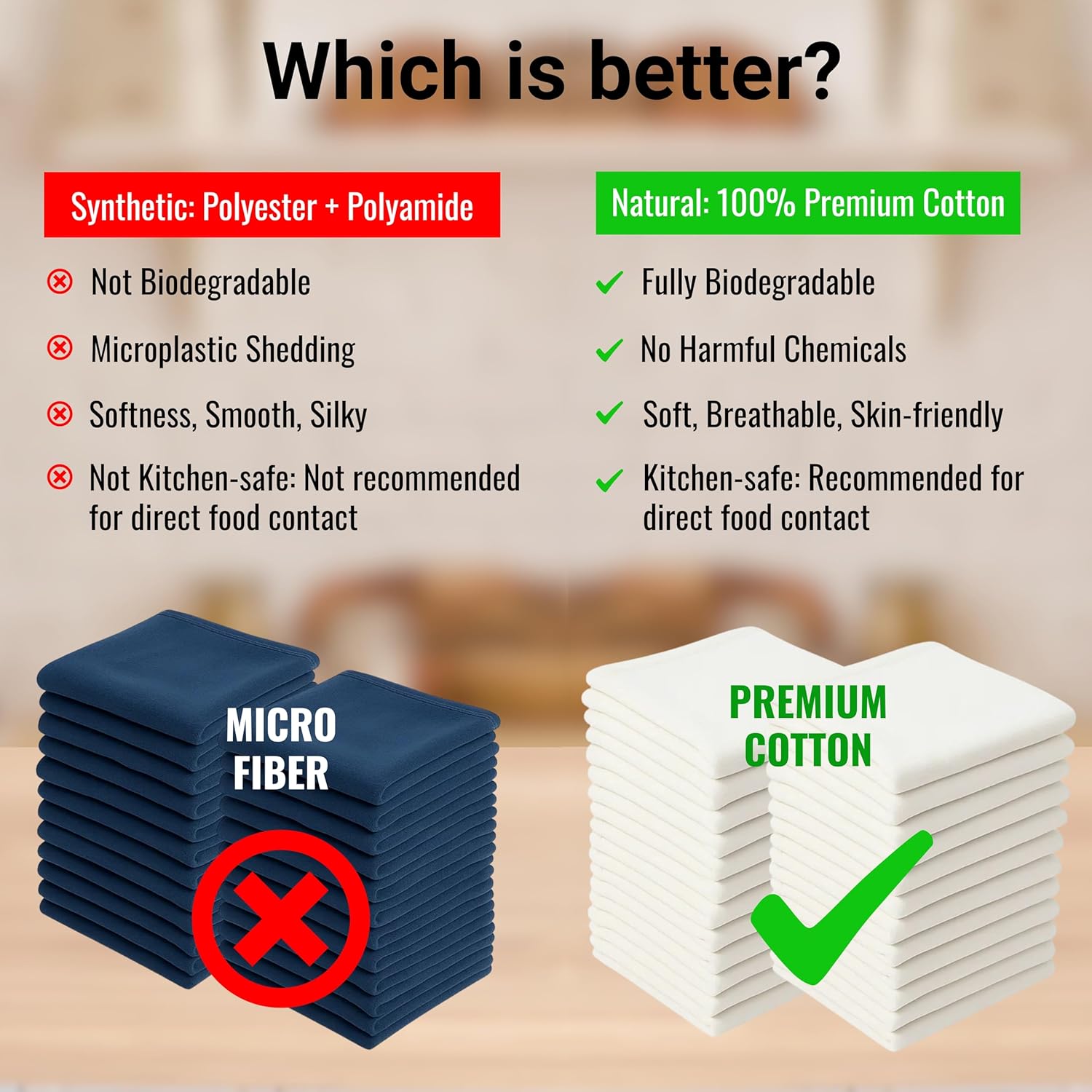 - MULTIPURPOSE: Their lint-free pure ring-spun cotton composition makes them perfect for drying glassware, hands and surfaces. Moreover, they excel at tasks like cheese straining, salad spinning, and even serving as reliable dough covers for baking.