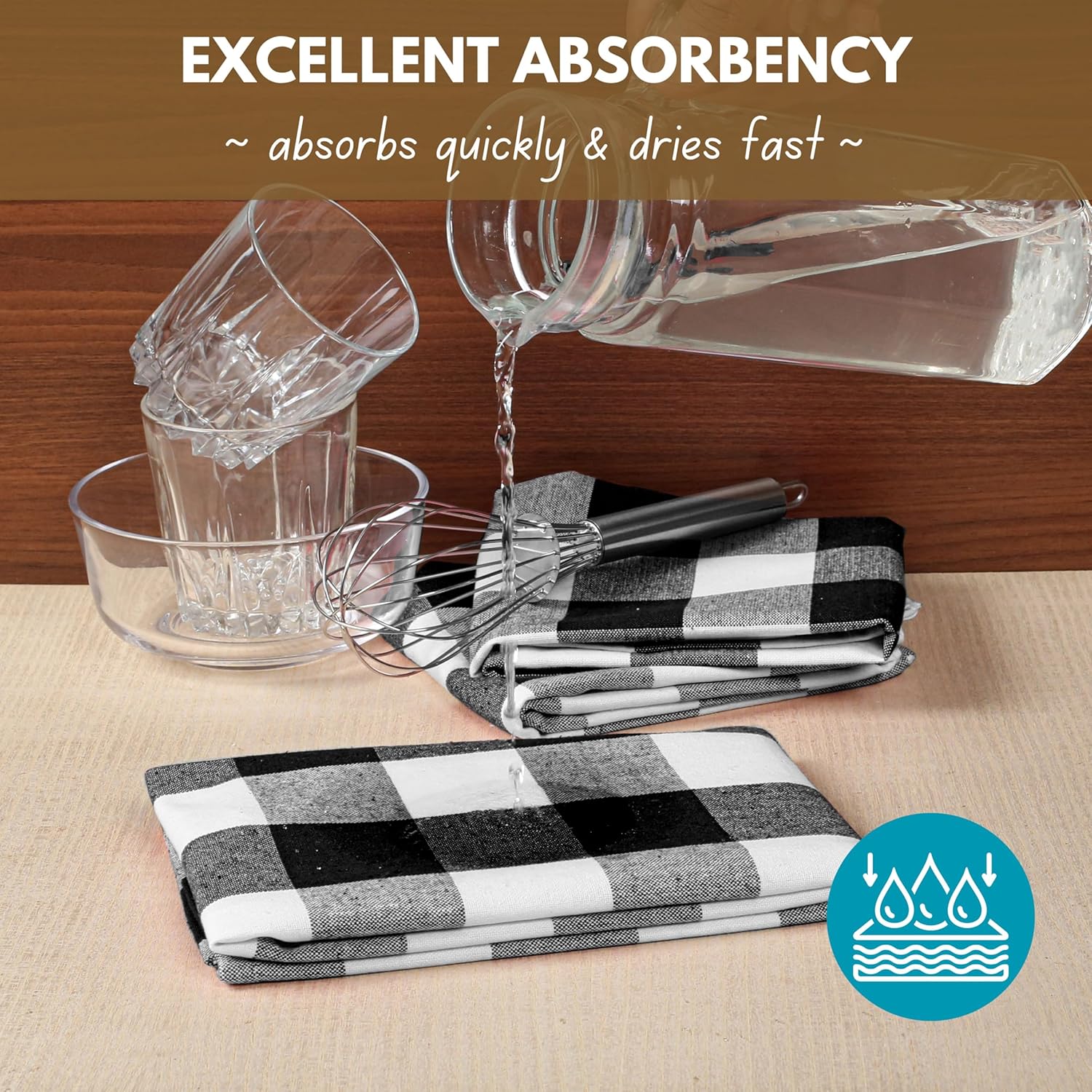 - SUPER ABSORBENT FABRIC: Quickly soaks up water and messes, keeping your kitchen clean and dry.