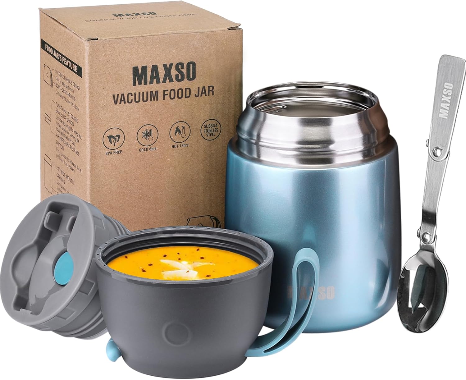 - 【Superior Vacuum Insulation】Keeping your soup hot, it can be an easy thing!!! Durable insulated thermal technology maintains temperatures for longer, interior is constructed entirely of food-grade stainless steel, keeping food hot up to 12 hours or cold for 24. Whether in school or in the office, you can always enjoy hot food and soup during lunch time! It is suitable for babies, toddlers, children, girls, boys, adults and the elderly, perfect for school, office, travel, camping, gym, home.