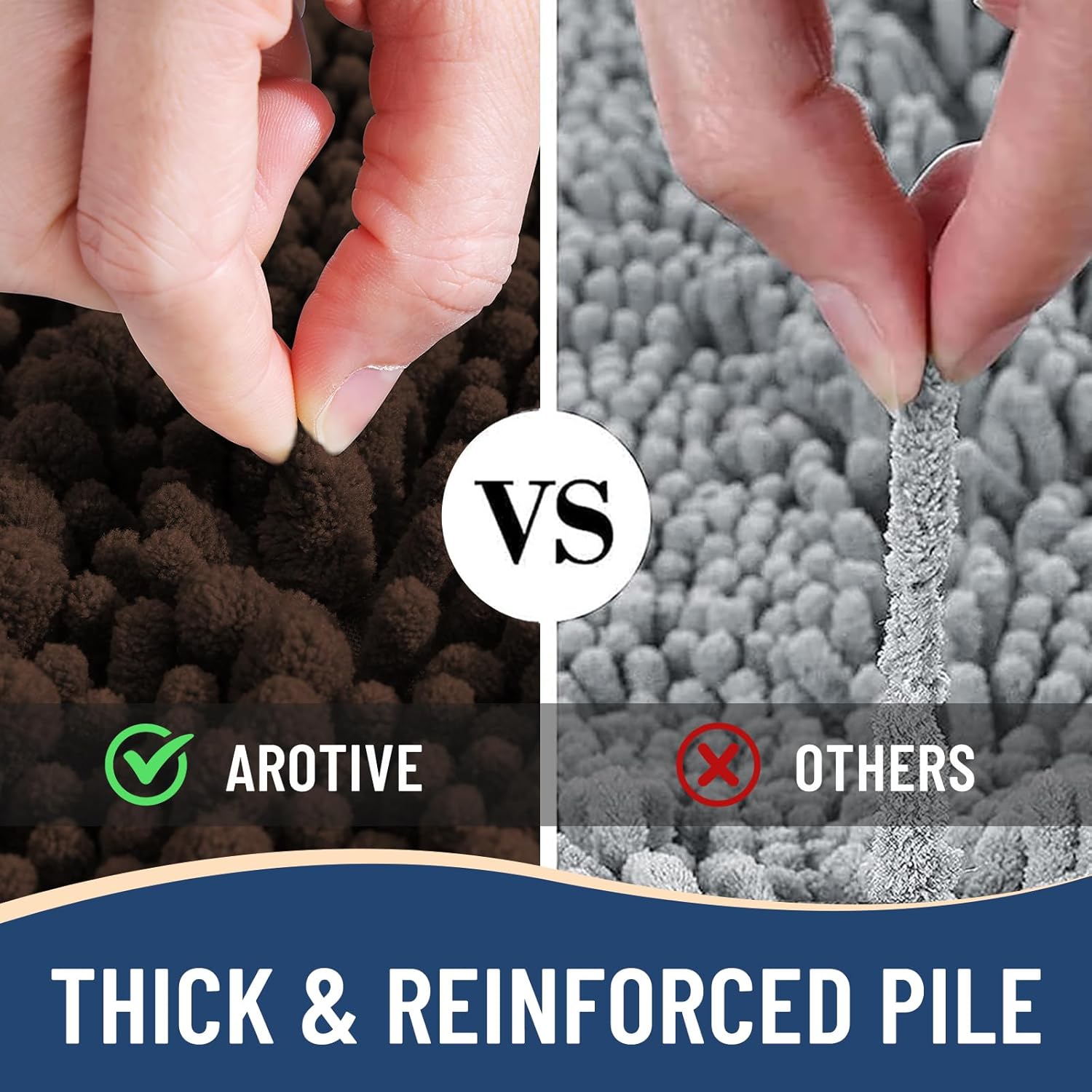 - Anti-Skid Backing: Arotive chenille bathroom rugs feature a non-slip bottom consisting of sturdy mesh PVC material that stops the bath mat from shifting and skidding. The middle layer is 4 mm memory foam, which can let you feel more comfortable when wrapping into the rugs. WARNING: Place bath mat on CLEAN DRY FLAT FLOOR ONLY. Water under bath rug can cause it to slip. Always keep the bottom of bath rug dry