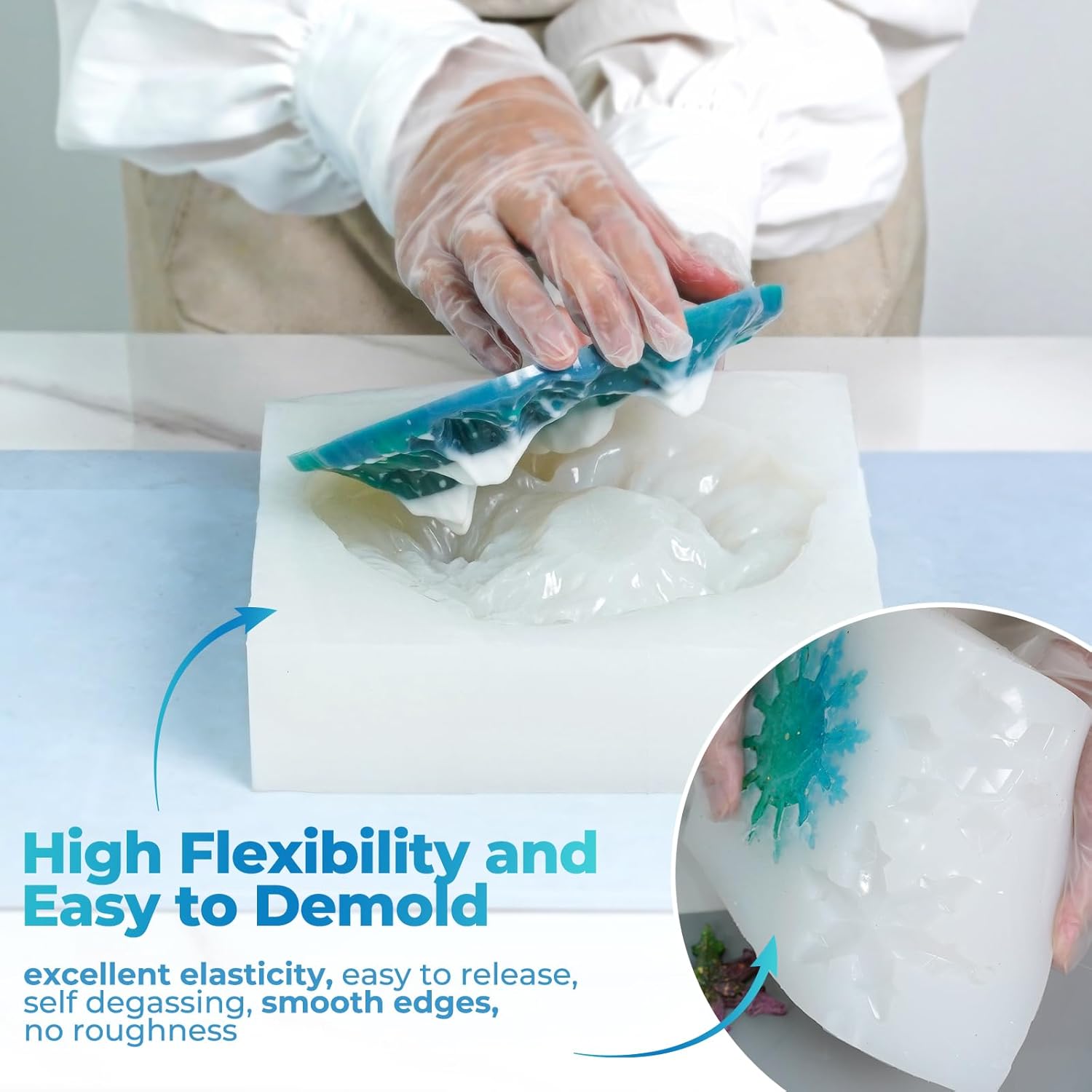 - PREMIUM MOLDS MAKING SILICONE MATERIAL: Our translucent liquid silicone for mold making are platinum-cured silicone, made by safe silicone material, non-toxic and no odor, very flexible, soft and clear. You could also mix mold making silicone rubber with mica powder to create new colors