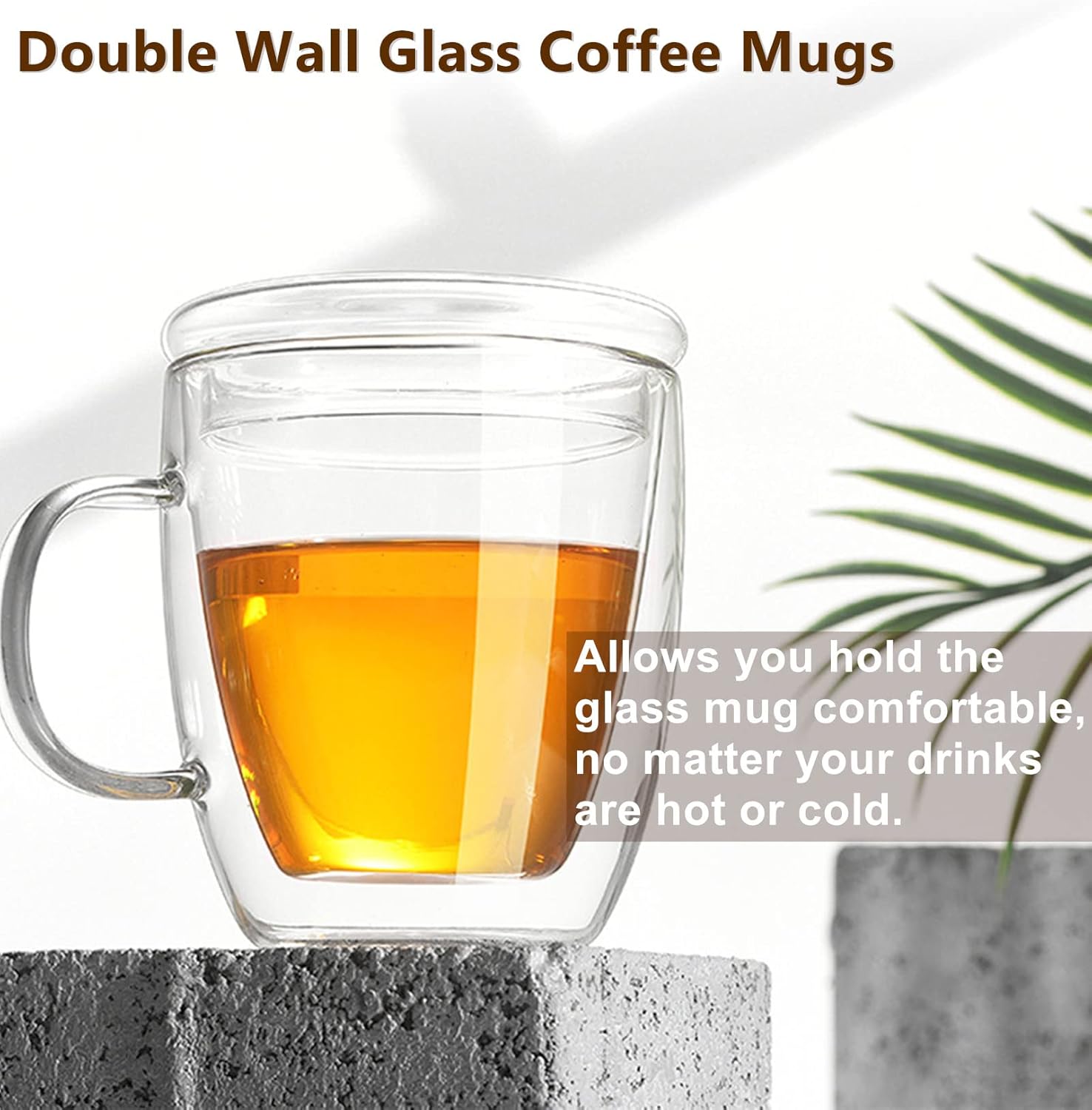 - 【Multiple Uses】clear coffee mug, double walled espresso cups, double wall tea cup, milk cups, hot cocoa cups, suitable for breakfast time, afternoon tea time, tea party or leisure time.