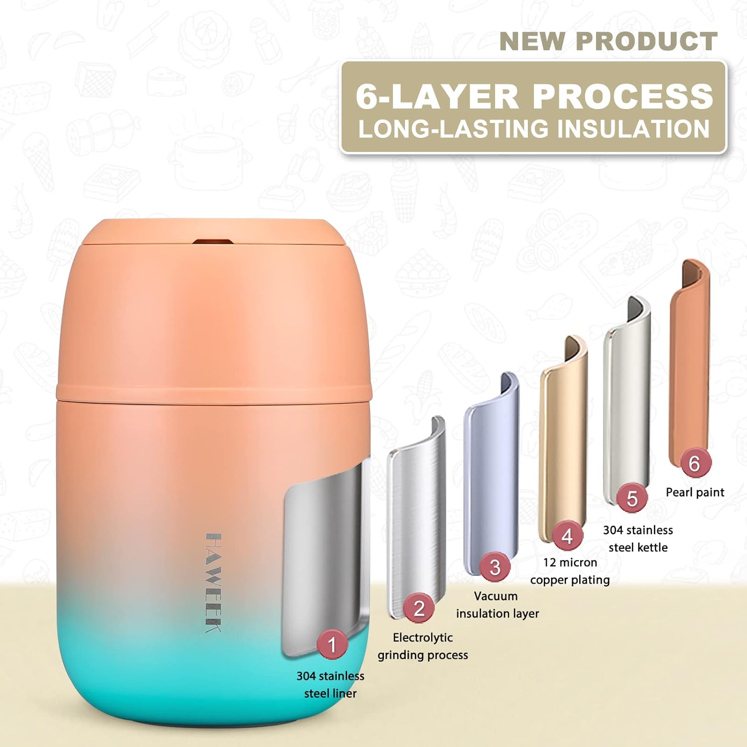 Insulated Food Container 17 oz Soup Thermo for Hot Food Adults, Stainless Steel Vacuum Lunch Box with Folding Spoon, Adult Kids Thermo Portable with Handle for School, Office, Outdoor