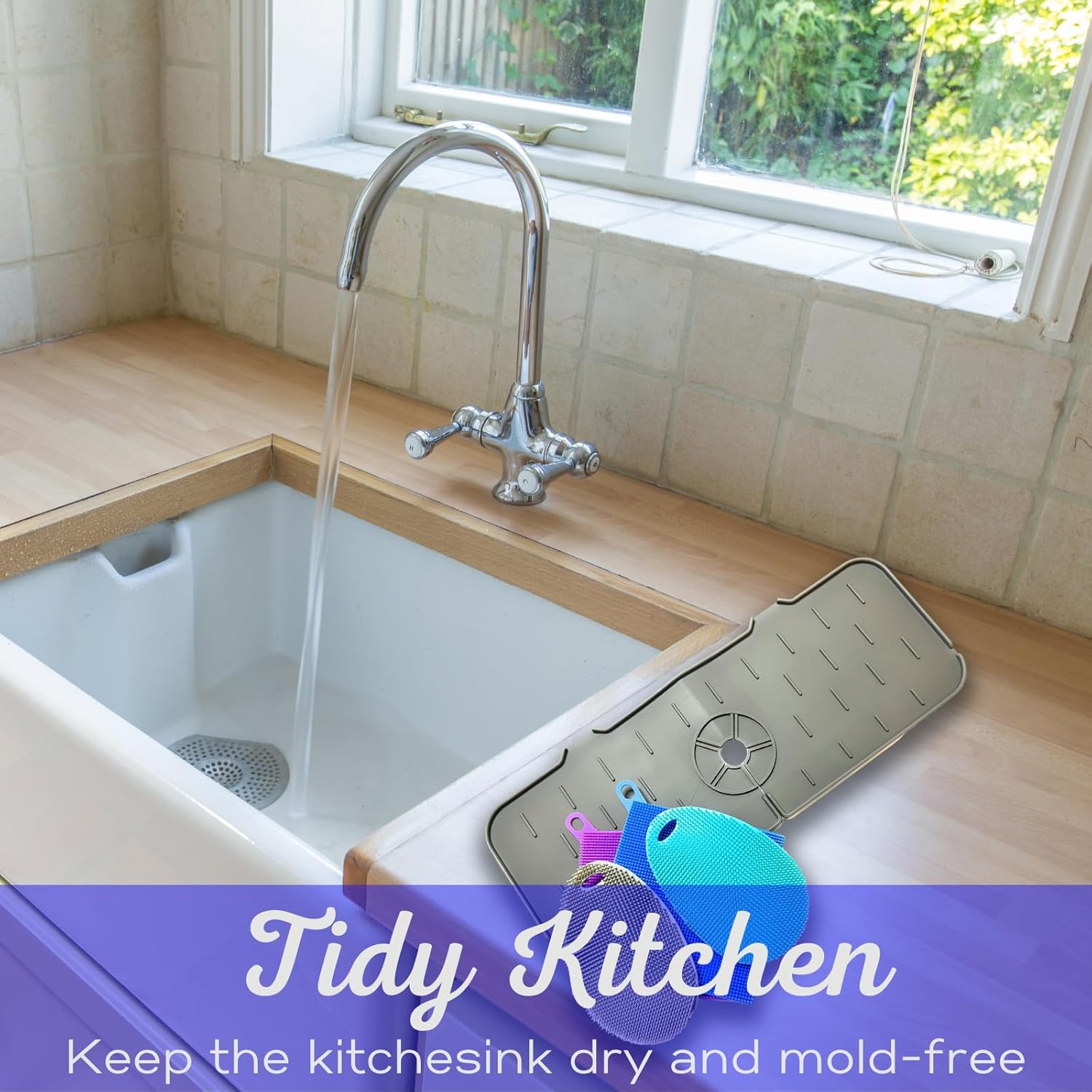 Faucet Mat for Sink - Silicone Scrubber Dish Set, Splash Guard, Food Grade BPA Free Kitchen Scrubber
