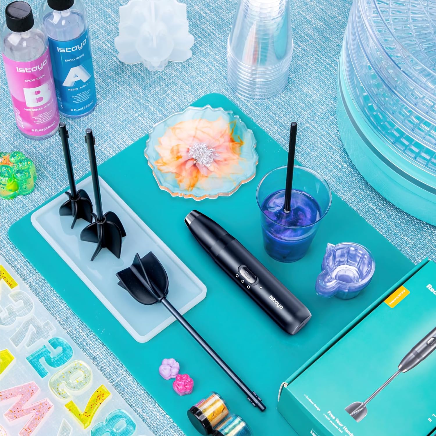ISTOYO Rechargeable Resin Mixer, Epoxy Mixer for Saving Your Wrist, Epoxy Resin Mixer for Resin Molds, Resin Supplies, Silicone Molds Mixing, DIY Crafts (Included 4 pcs Paddles)