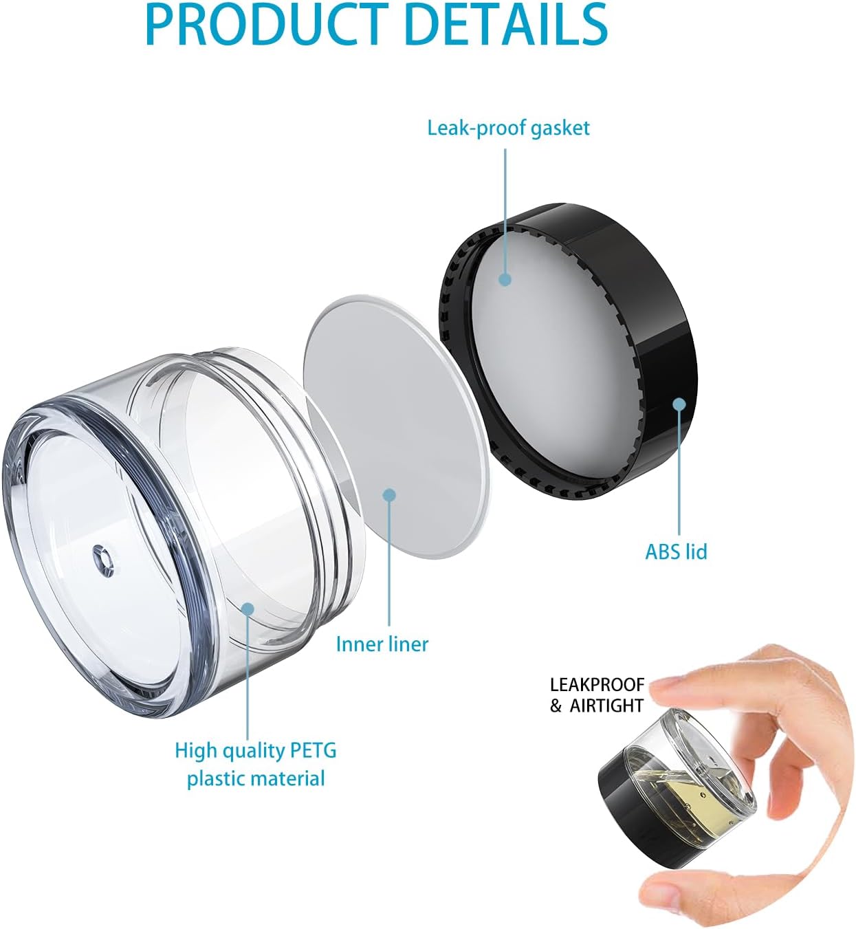 - ✅Travel size and Easy to carry: 3 size 0.17/0.5/1 OZ travel containers, each of the volume container has 2 pieces with black and white lid, convenience for different use. Fit in your pocket, purse, handbag, back pack and luggage, small size allows them to go anywhere.