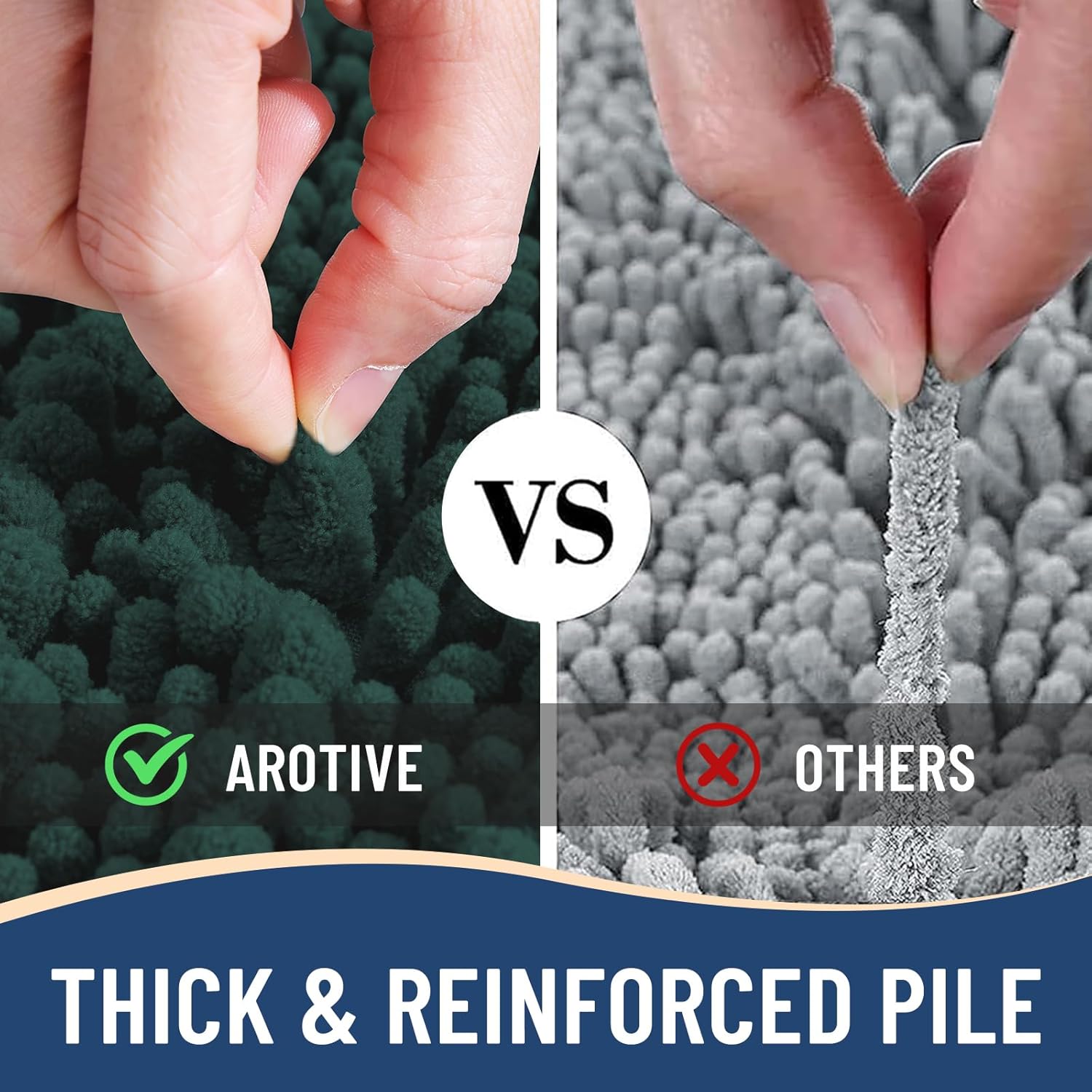 Arotive Luxury Chenille Bathroom Rug Mat, Extra Soft Thick Absorbent Shaggy Bath Rugs, Non-Slip Machine Wash Dry, Plush Bath Mats for Bathroom, Shower and Tub, 24x16, Dark Green