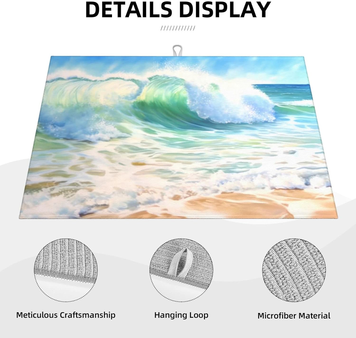 Large Dish Drying Mats For Kitchen Counter Microfiber Kitchen Drying Mat XL Draining Pad Absorbent Quick Drying Dish Mat 18x24 Inch - Beach