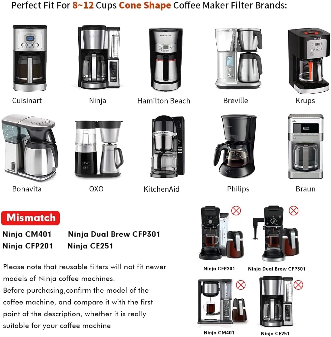 #4 Reusable Permanent Cone Coffee Filters Perfect Fit for Cuisinart Hamilton Beach Coffee Maker Filter, Replace Cuisinart GTF Gold Tone Coffee Filters, 8~12 Cup Size 4 Coffee Filters for Cuisinart