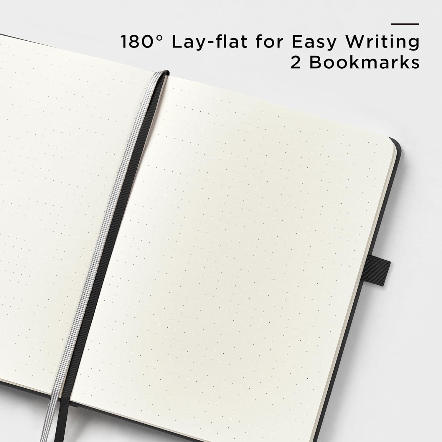 - 180° LAY-FLAT DESIGN: The lay-flat design allows for easy writing and ensures that you can utilize every page efficiently. Journaling, note-taking and planning has never been easier! 2 Bookmarks to help you find important content faster