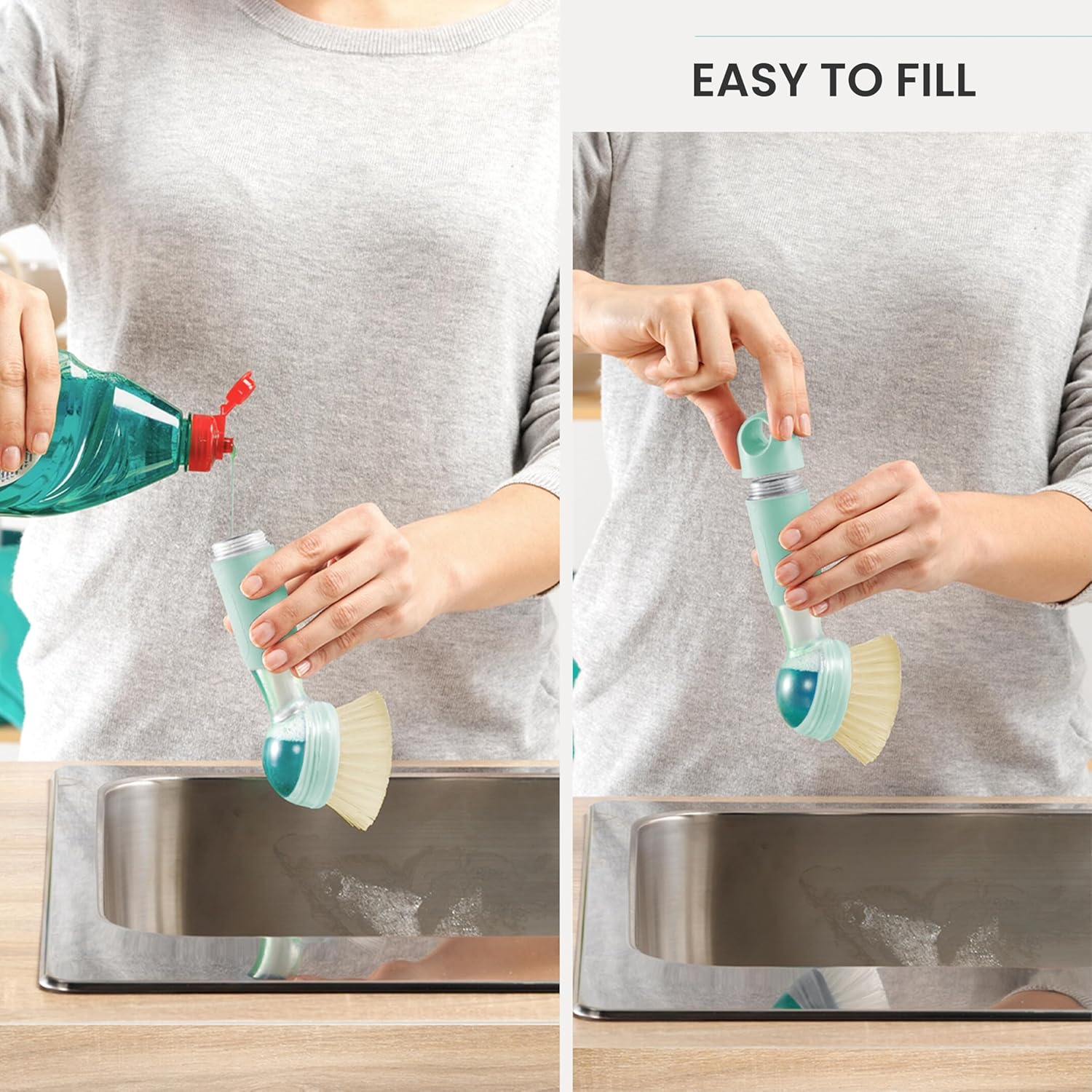 - Multipurpose Dish Brush: Ideal dish brush with handle and built-in soap dispenser for easy kitchen cleaning. Keeps things hygienic and accessible, dispensing soap directly onto surfaces, no need to manually add soap, saving time and effort.