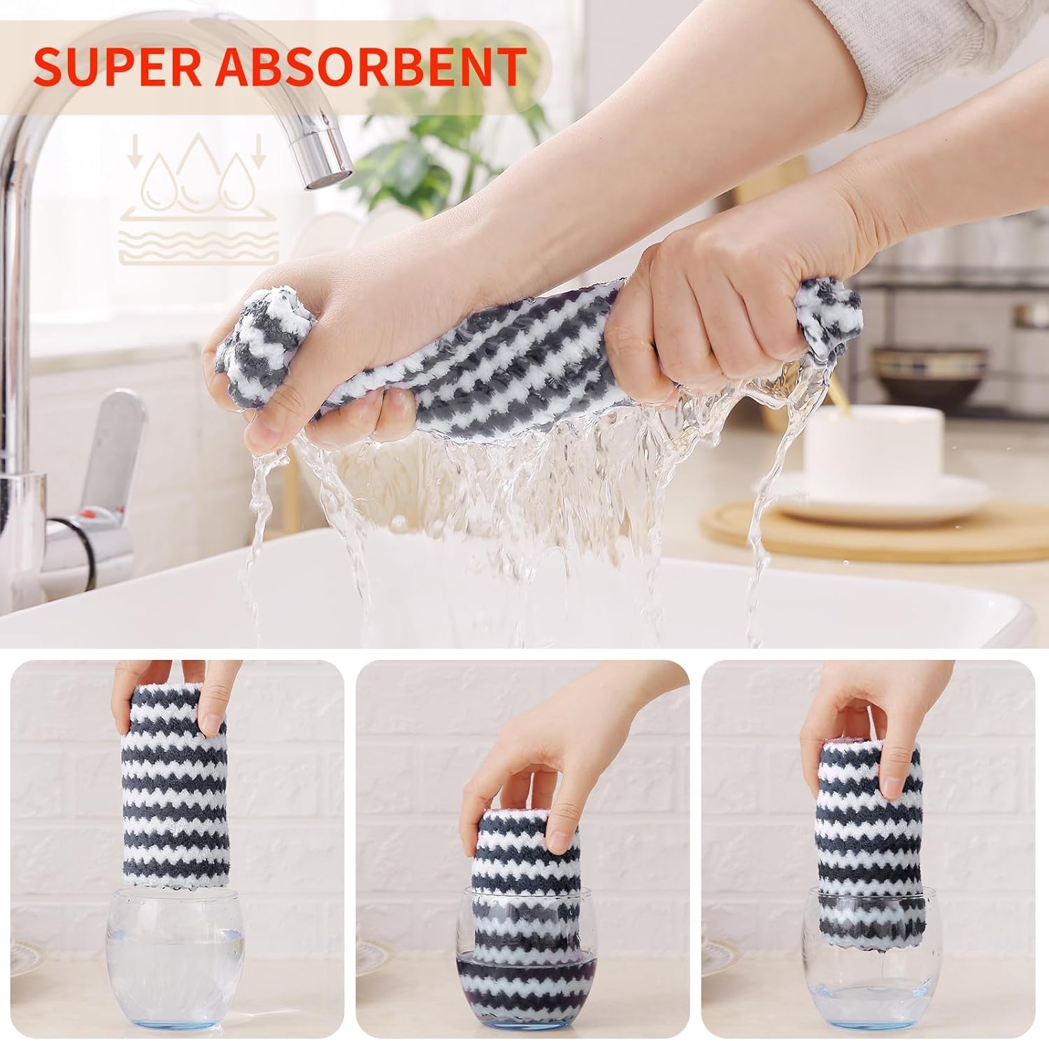 Homaxy 24 Pack Kitchen Dish Cloths, Ultra Soft and Absorbent Dish Towels, Reusable Fast Drying Microfiber Cleaning Cloth, Coral Velvet Wave Design No-lint, 10 x 10 inches, Dark Grey