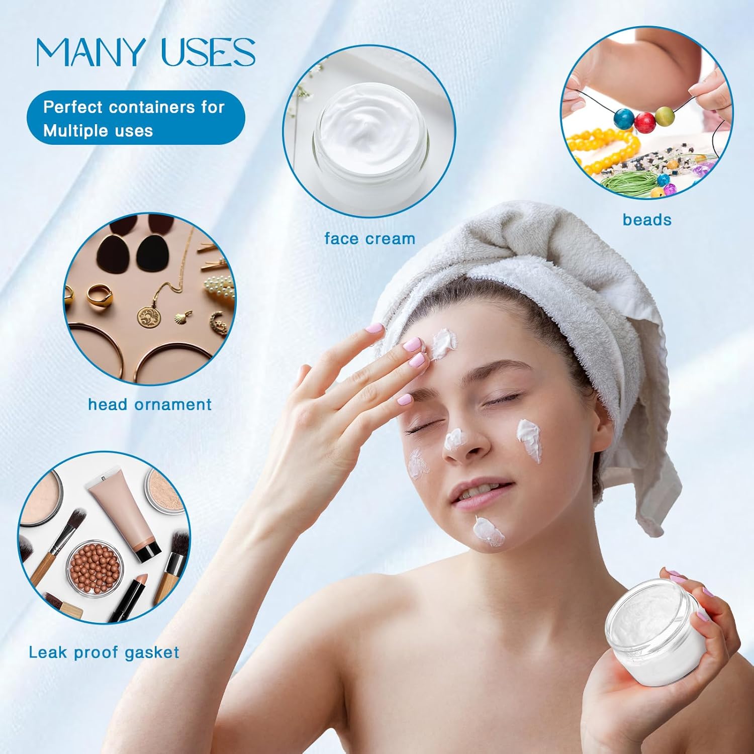 Patelai 4 Pieces Round Wide-mouth Leak Proof Plastic Container Jars with Lids for Travel Storage Makeup Beauty Products Face Creams Oils Salves Ointments DIY Making(1 Ounce,Blue)
