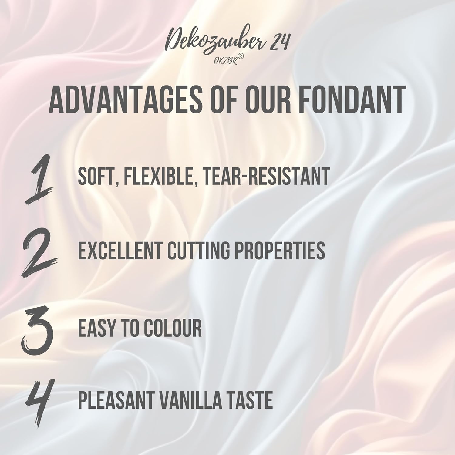 - SMOOTH TEXTURE: The fondant is soft and pliable, allowing for easy shaping, molding, and sculpting to create intricate designs.