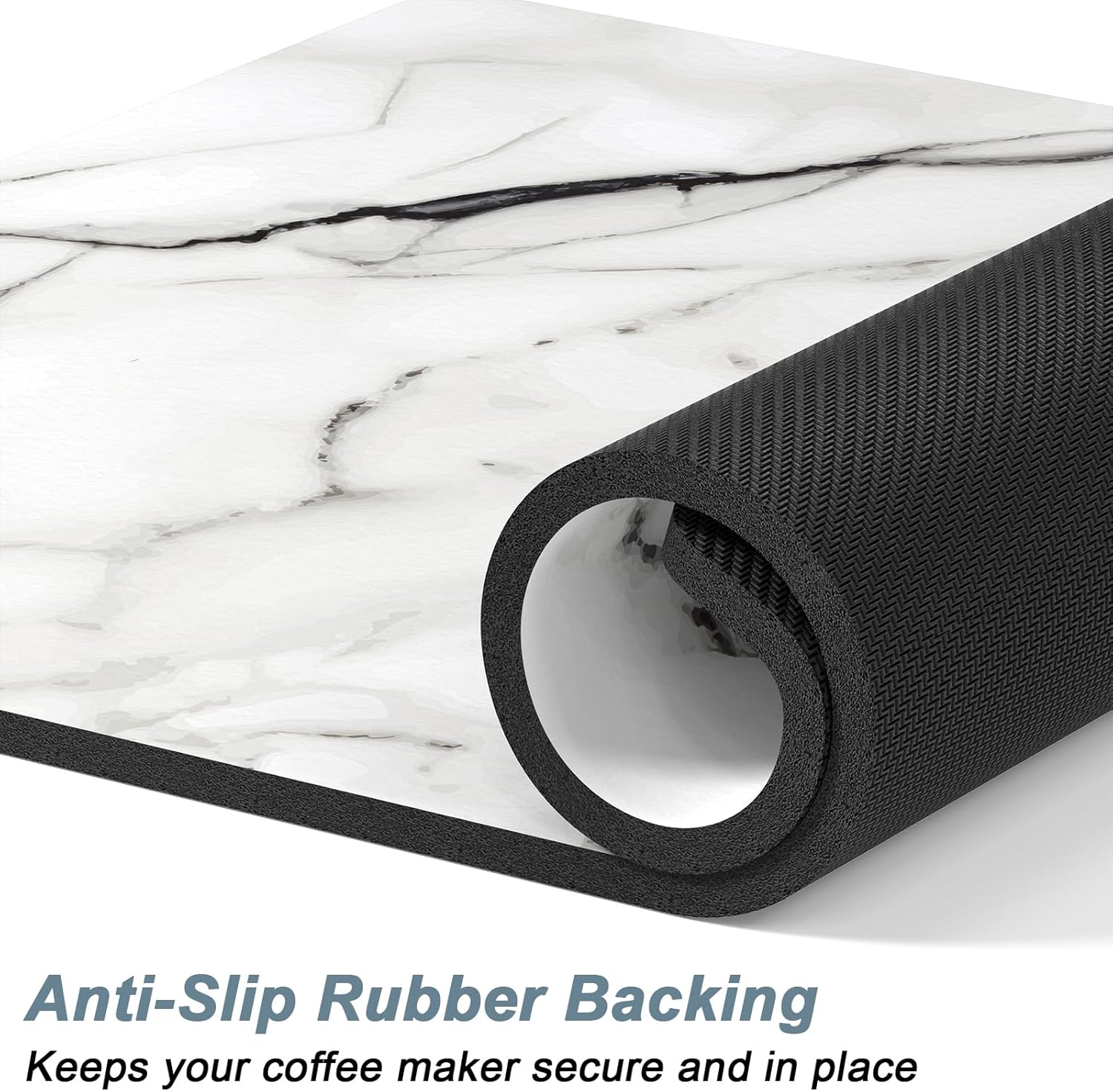 Rnivvi Coffee Mat, 12" x 19" Cute Marble Style Coffee Bar Mats for Espresso Machine Station Accessories and Organizer, Hide Stain Rubber Backed Absorbent Dish Drying Pad for Kitchen Counter, White