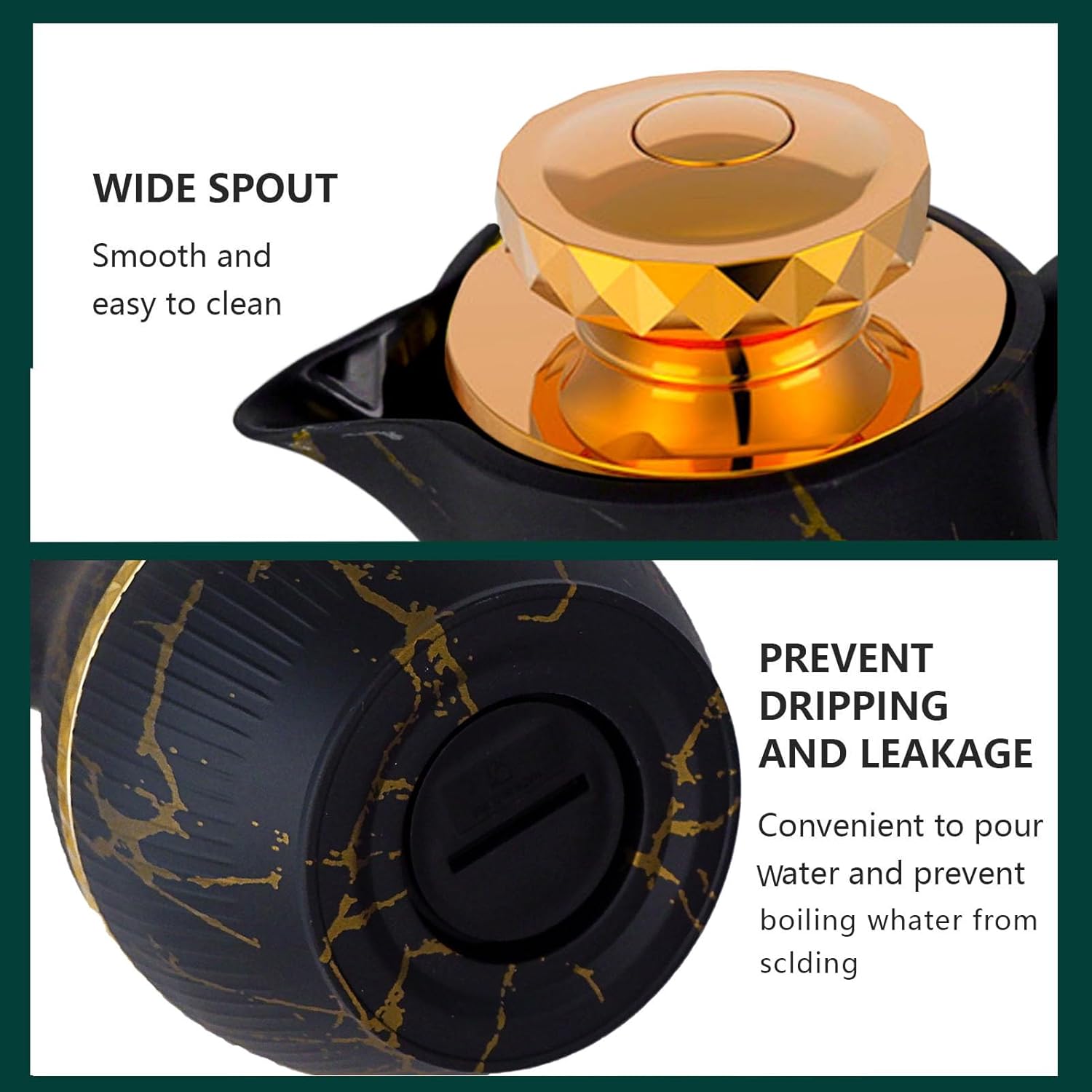 - 【Premium Materials】This carafe for hot water comes with a premium quality, ABS plastic outer body that does not sweat, is rust proof and gives the vacuum carafe lasting durability. It features a leak proof lid that prevents any drips and locks in freshness of your drinks.