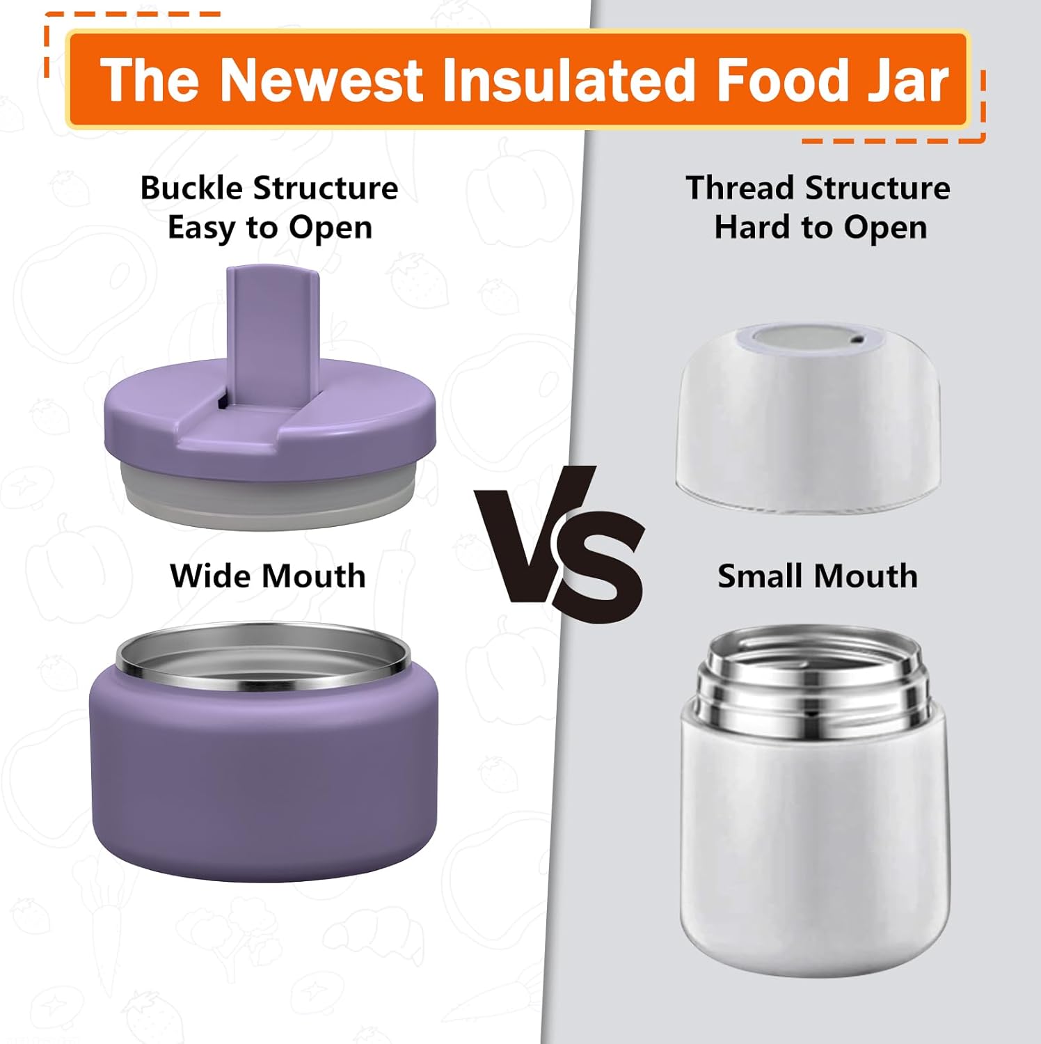 13.5oz Kids Thermos for Hot Food, Insulated Vacuum Food Jar with Buckle Lid, Stainless Steel Wide Mouth Leak Proof Insulated Lunch Container for School Picnic Travel,Purple