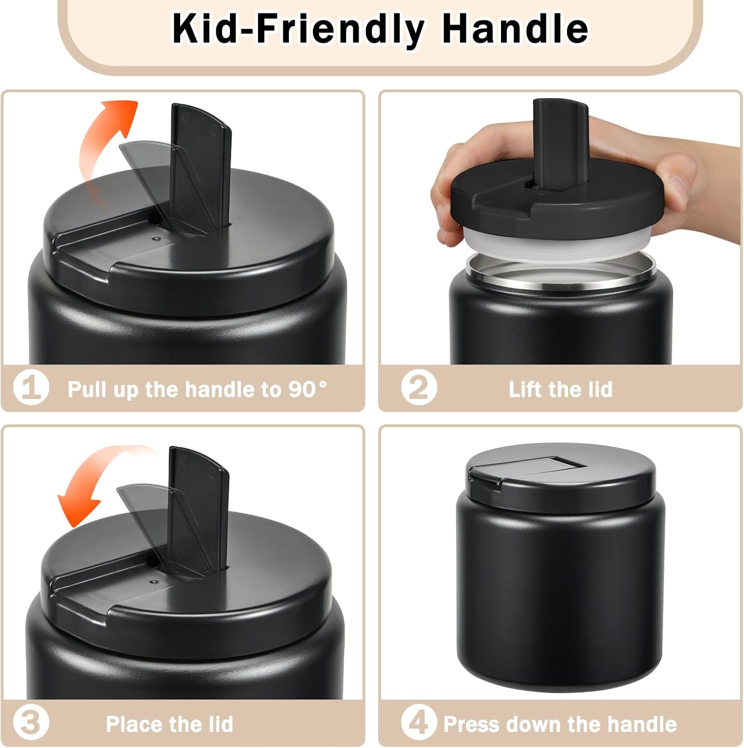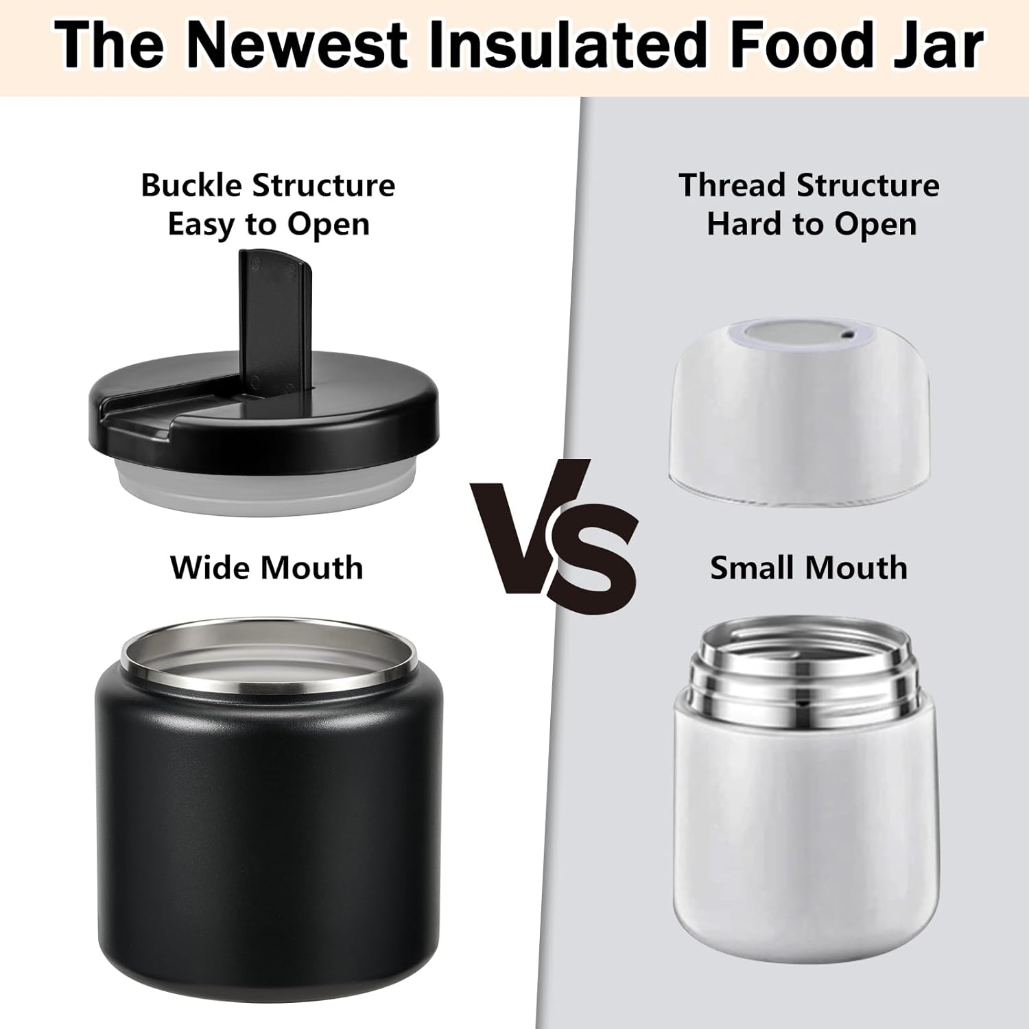 - Easy to Open: This thermos for hot food features a unique Buckle Structure design. Simply pull the handle to a 90° angle to easily open the lid. The handle is especially child-friendly, allowing little hands to open it with ease.