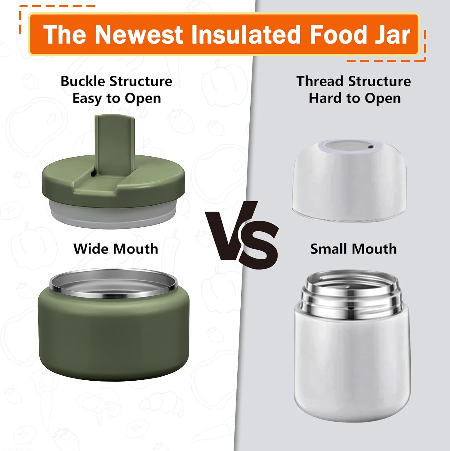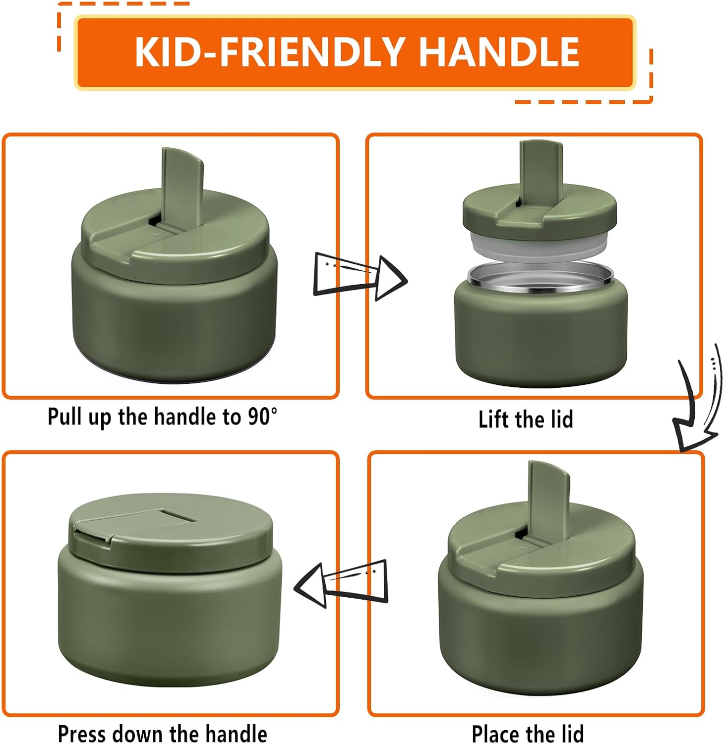 - Easy to Open: This thermos for hot food features a unique Buckle Structure design. Simply pull the handle to a 90° angle to easily open the lid. The handle is especially child-friendly, allowing little hands to open it with ease.