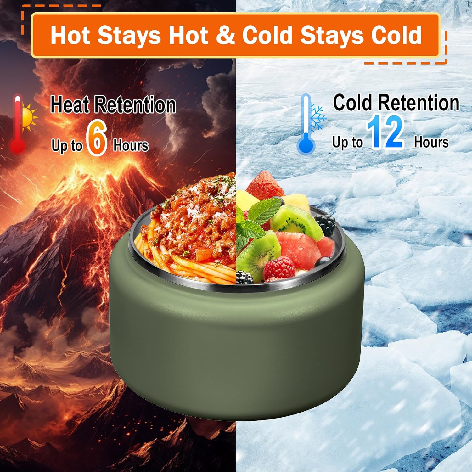 - Thermos for Hot Food: Made with 18/8 stainless steel and featuring a vacuum-sealed design, this food thermos keeps food hot for up to 6 hours and cold for up to 12 hours. It's completely reusable and made from eco-friendly, BPA-free, food-safe materials.