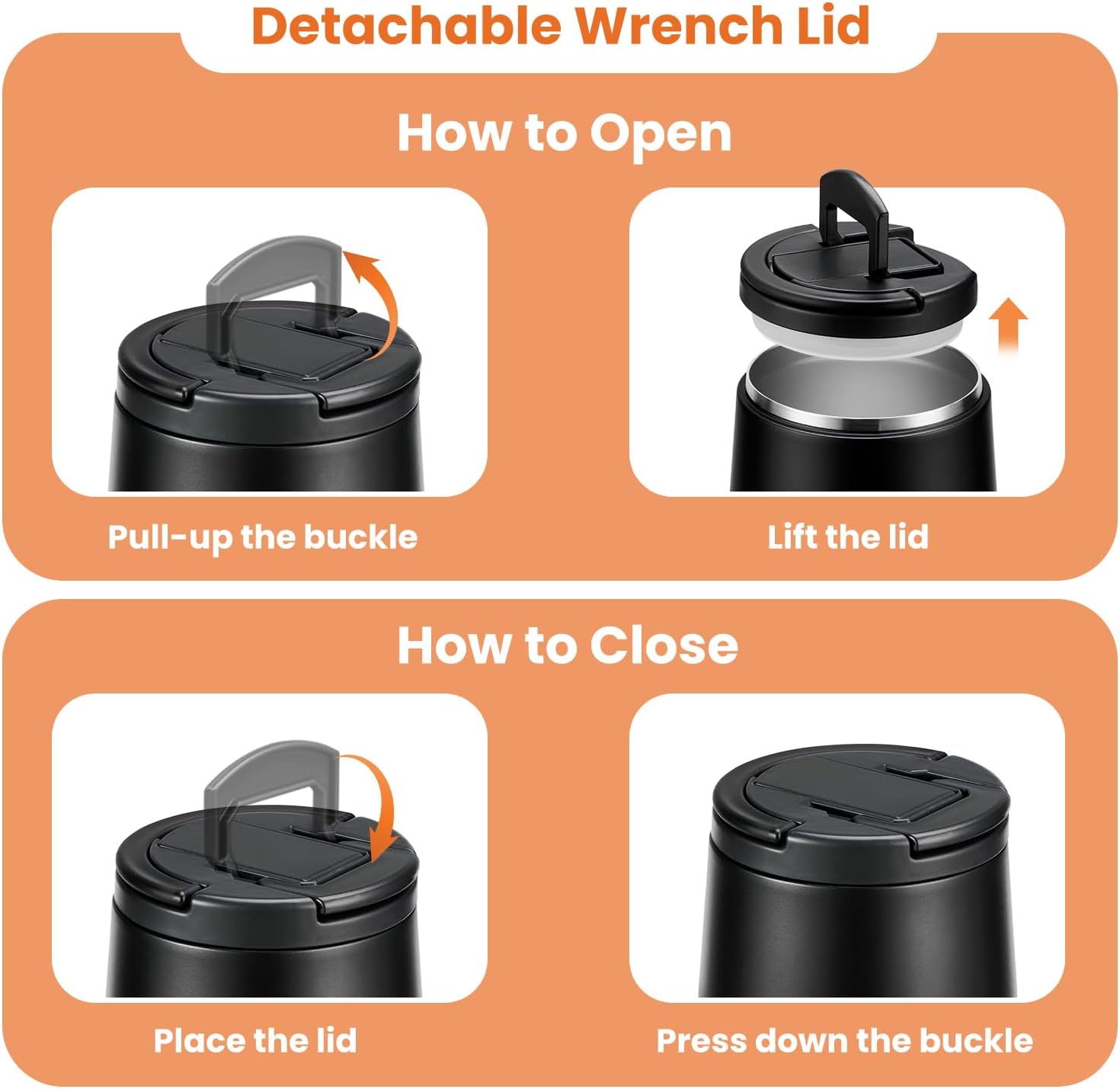 - New Buckle of Lid: The food containers feature a press-seal construction, allowing you to simply pull the handle upwards to 90° to open the lid/ 90° downward closure. This design is maintaining vacuum no need to rotate the lid open . Additionally, the container comes equipped with a carrying handle, making it convenient for your child to carry it. Whether at school, an outdoor outing, or a family gathering, this user-friendly design empowers children to confidently enjoy their delicious meals.