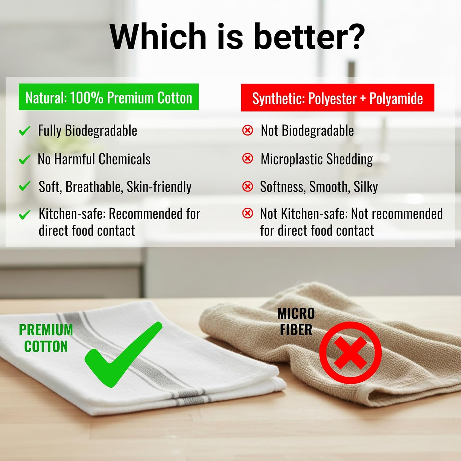 - High Absorbency: These 100% cotton kitchen towels are ultra-absorbent and quick-drying, perfect for drying dishes, wiping up spills, and general cleaning.