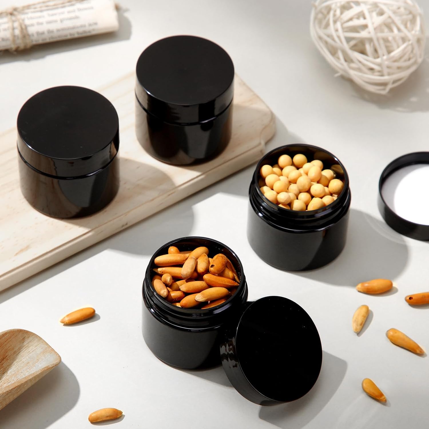 Patelai 4 Pieces Round Wide-mouth Leak Proof Plastic Container Jars with Lids for Travel Storage Makeup Beauty Products Face Creams Oils Salves Ointments DIY Making(2 Ounce,Pure Black)