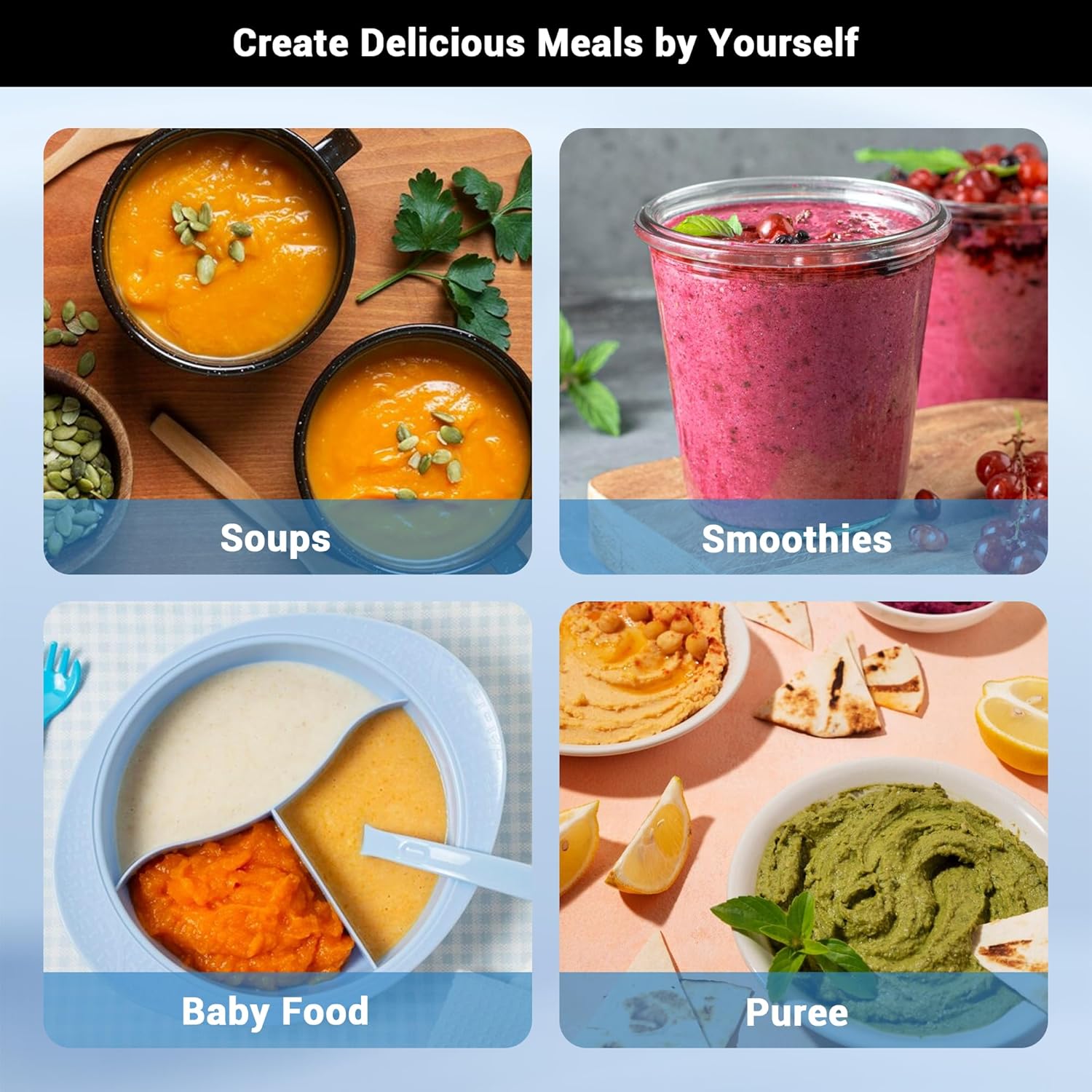 - Complete Kitchen Accessories Included: Your package comes with a snap-on Blending attachment, a twist-and-lock Chopper featuring a removable blade, and a pair of Egg Beaters. The versatile chopper doubles as a mini food processor, ensuring your kitchen tasks are both enjoyable and effortless with all the essential accessories included.