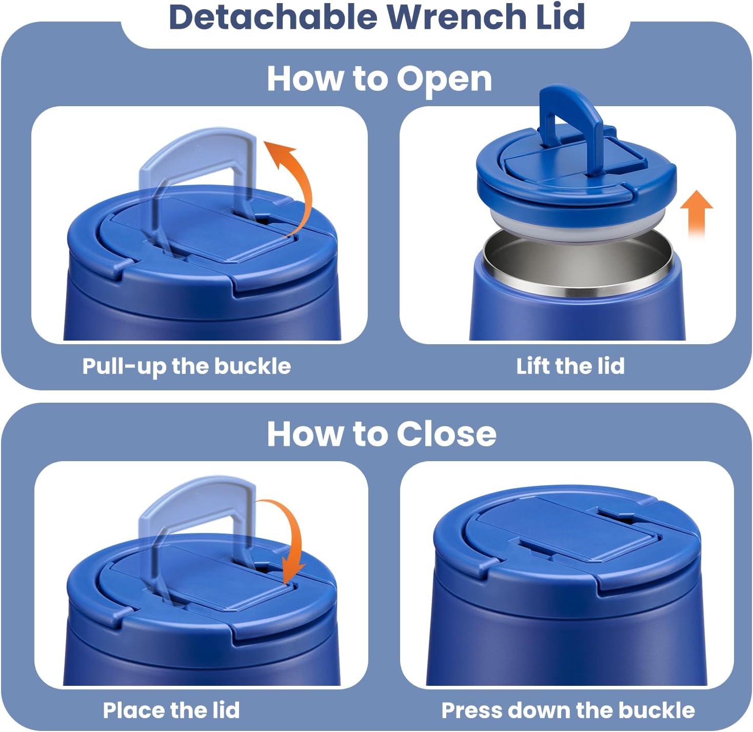 - New Buckle of Lid: The food containers feature a press-seal construction, allowing you to simply pull the handle upwards to 90° to open the lid/ 90° downward closure. This design is maintaining vacuum no need to rotate the lid open . Additionally, the container comes equipped with a carrying handle, making it convenient for your child to carry it. Whether at school, an outdoor outing, or a family gathering, this user-friendly design empowers children to confidently enjoy their delicious meals.