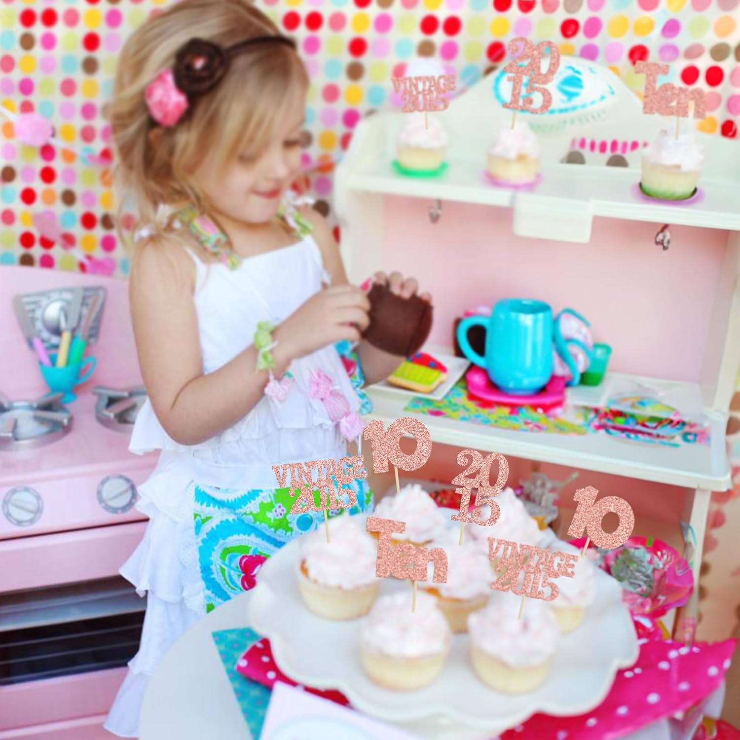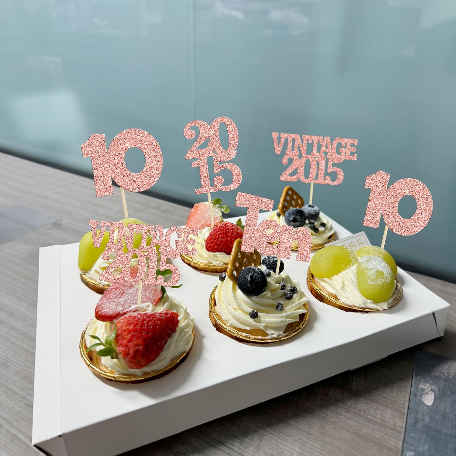 Gyufise 24Pcs 10th Birthday Cupcake Toppers Glitter Ten Vintage 2015 Hello 10 Years Birthday 10 Cupcake Picks Double Digits Cake Decoration for Happy 10th Anniversary Party Supplies Rose Gold