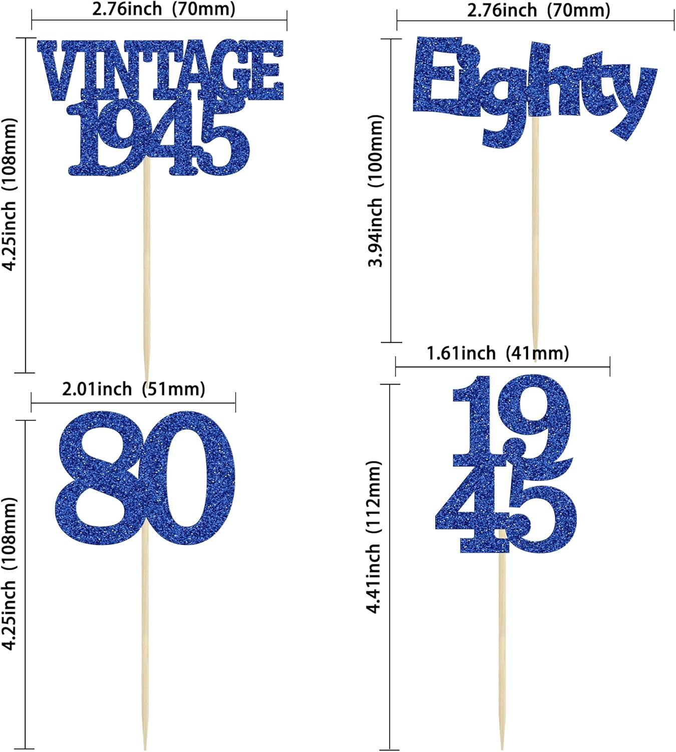 Gyufise 24Pcs Vintage 1945 Cupcake Toppers Glitter Cheers to 80 Fabulous Eighty Cupcake Picks 80th Birthday Wedding Anniversary Party Cake Decorations Supplies Deep Blue