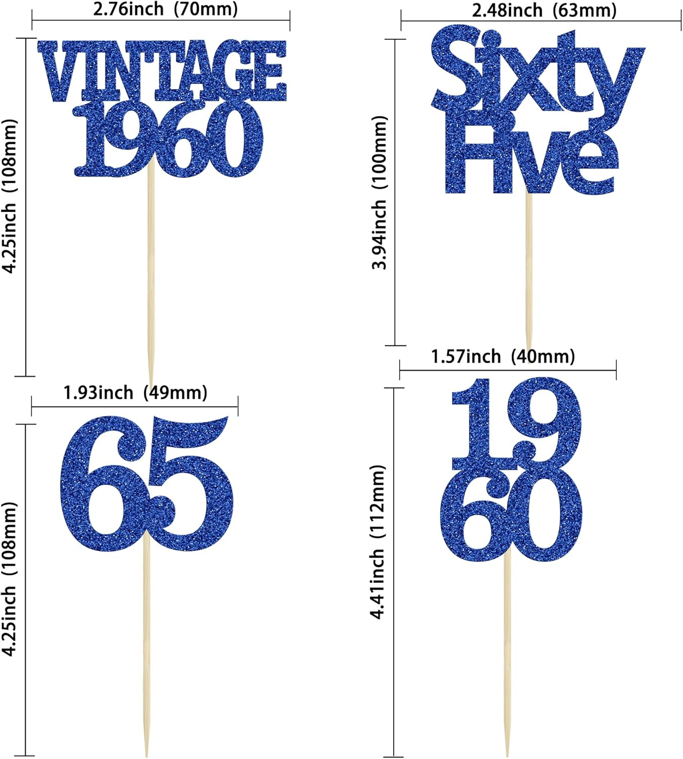 Gyufise 24Pcs Vintage 1960 Cupcake Toppers Glitter Cheers to 65 Fabulous Sixty Five Cupcake Picks 65th Birthday Wedding Anniversary Party Cake Decorations Supplies Deep Blue