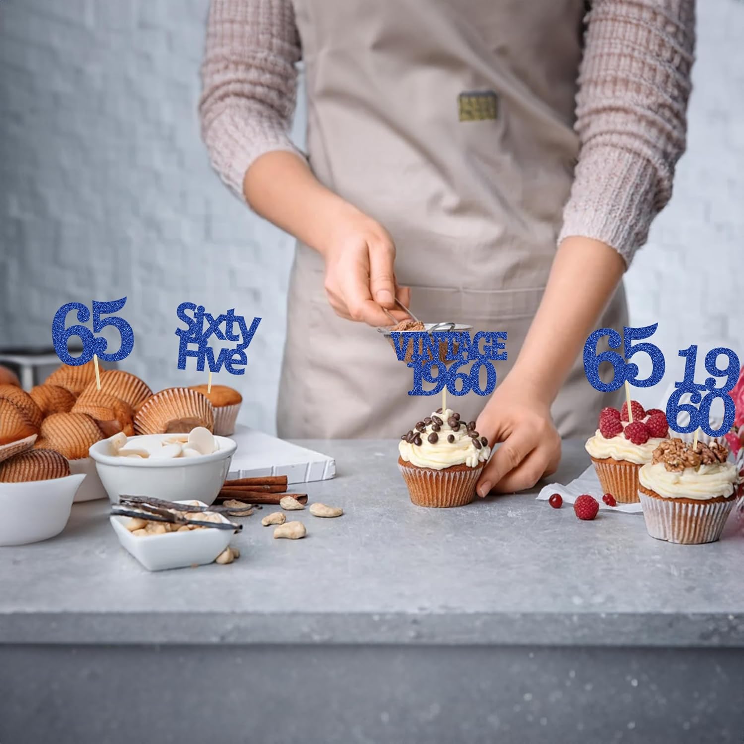 - Package included: 24Pcs 65th Birthday Cupcake Toppers. Comes with assembled, so you can insert into your cake directly, which make your cake more interesting.