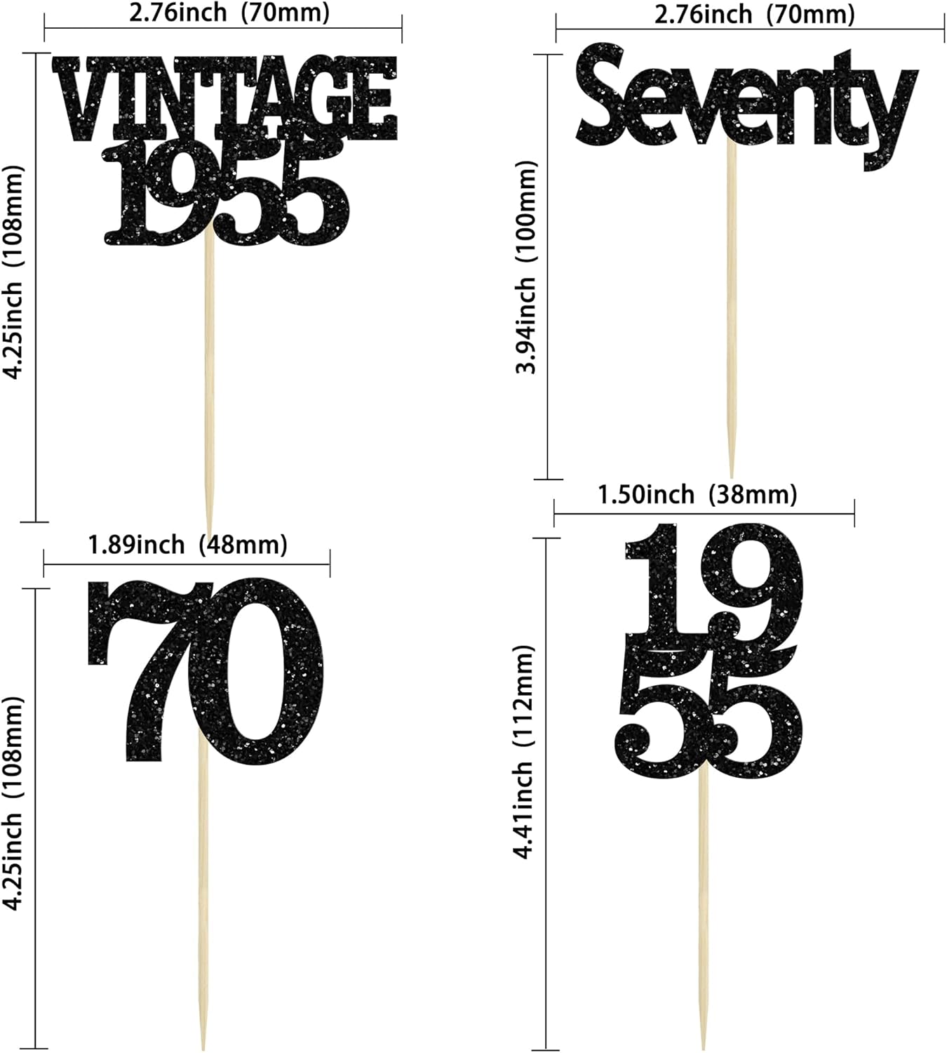 Gyufise 24Pcs Vintage 1955 Cupcake Toppers Glitter Cheers to 70 Fabulous Seventy Cupcake Picks 70th Birthday Wedding Anniversary Party Cake Decorations Supplies Black