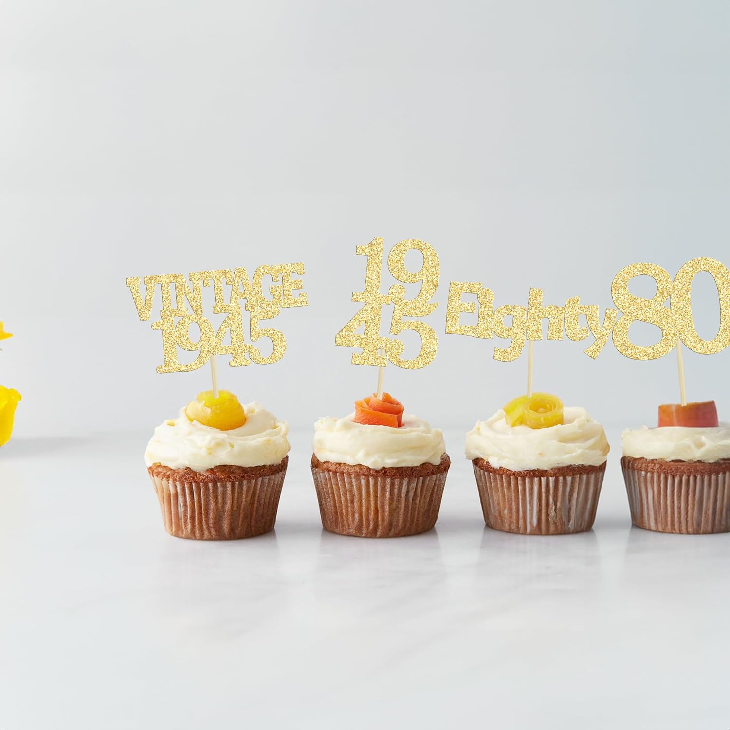 Gyufise 24Pcs 80th Birthday Cupcake Toppers Glitter Cheers to 80 Fabulous Eighty Vintage 1945 Cupcake Picks 80th Birthday Wedding Anniversary Party Cake Decorations Supplies Gold