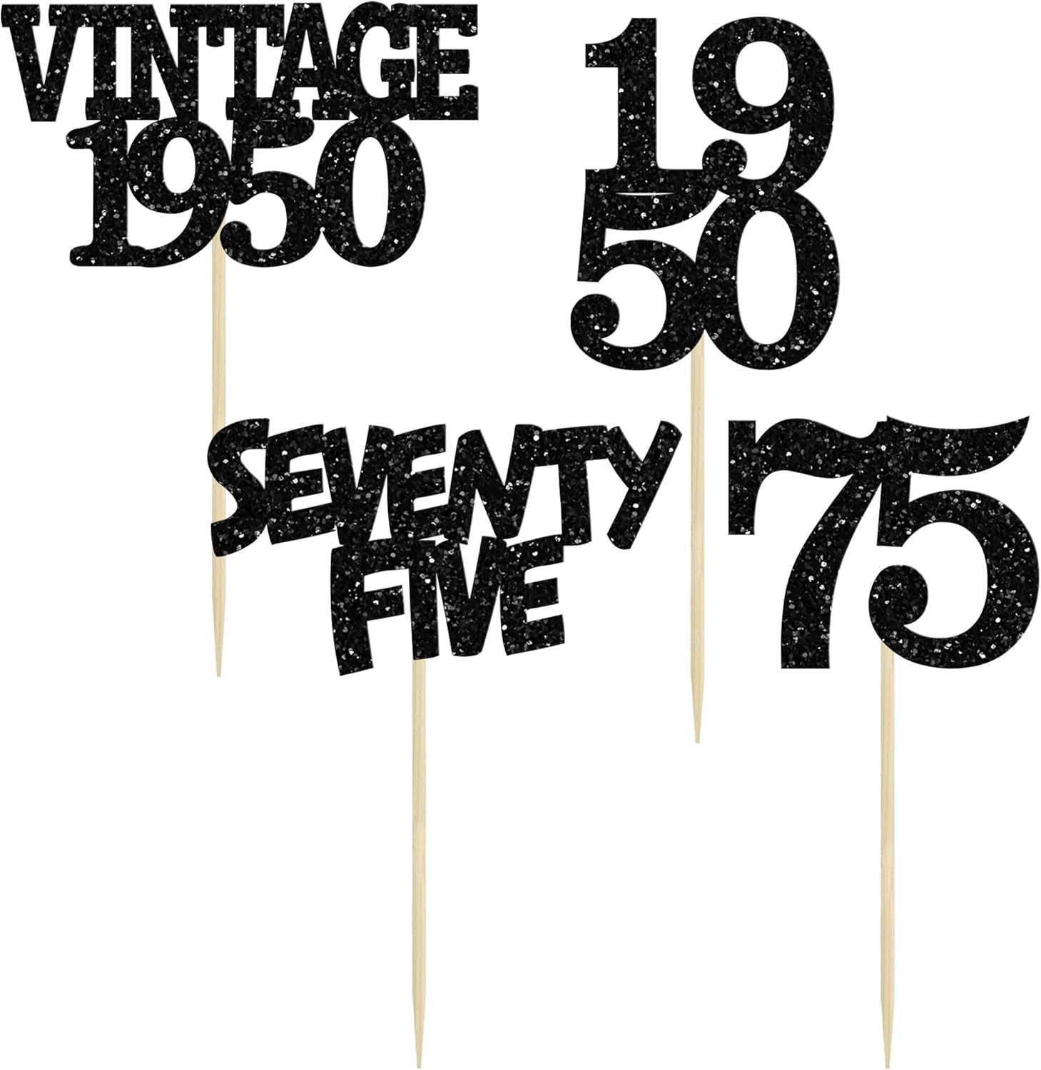 Gyufise 24Pcs Vintage 1950 Cupcake Toppers Glitter Cheers to 75 Fabulous Seventy Five Cupcake Picks 75th Birthday Wedding Anniversary Party Cake Decorations Supplies Black