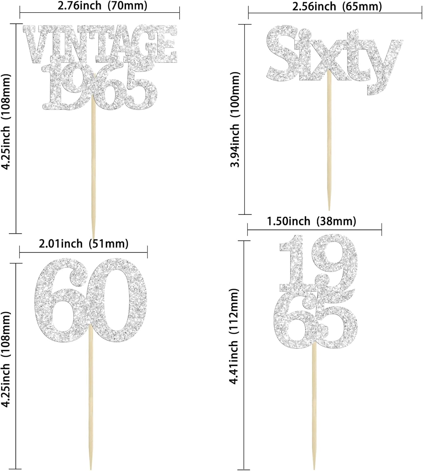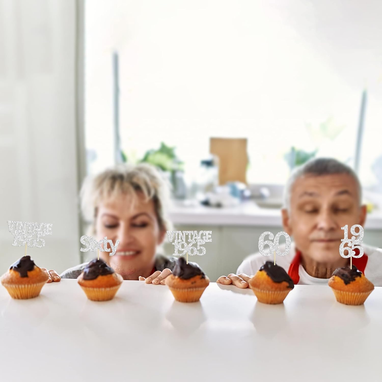 - Package included: 24Pcs 60th Birthday Cupcake Toppers. Comes with assembled, so you can insert into your cake directly, which make your cake more interesting.