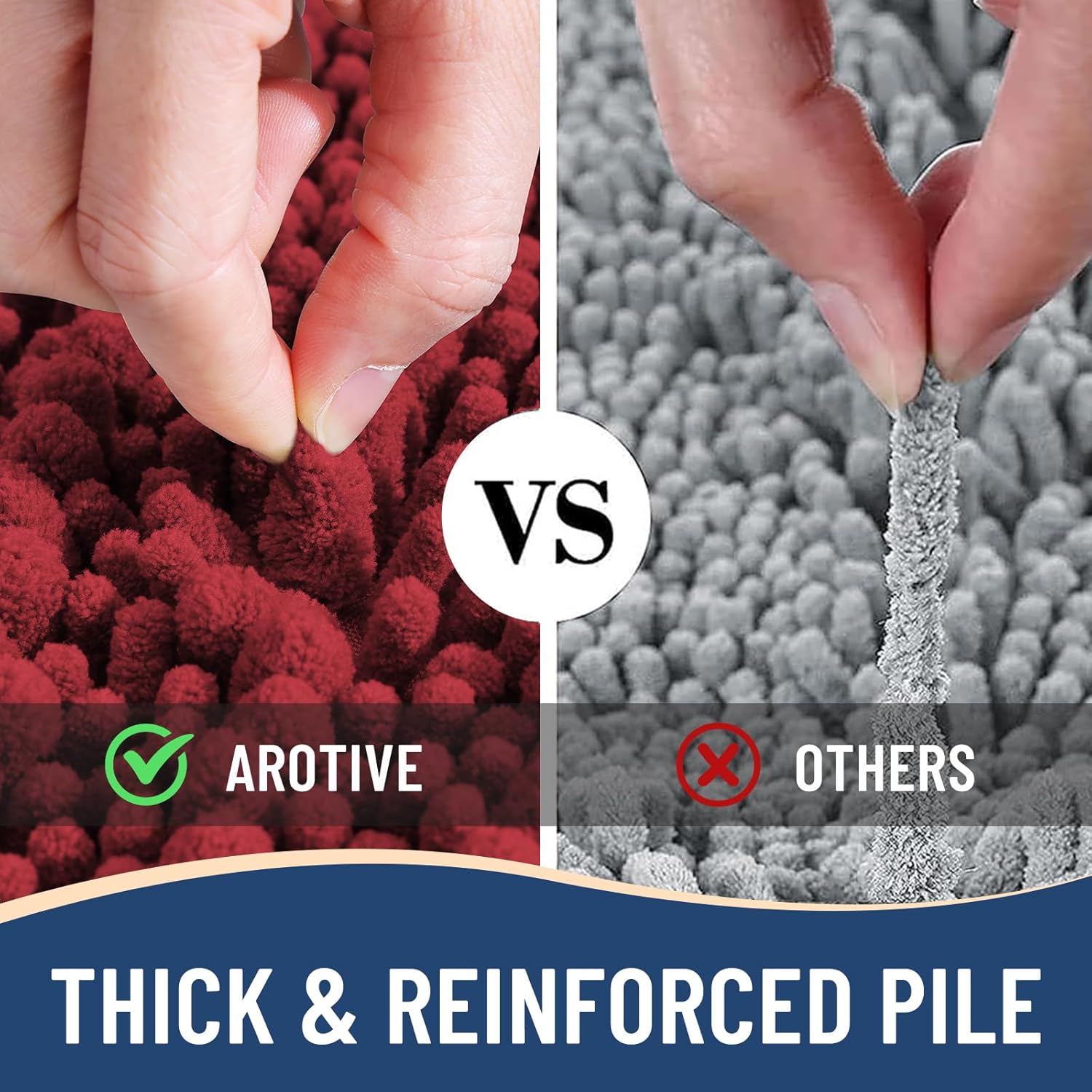 Arotive Luxury Chenille Bathroom Rug Mat, Extra Soft Thick Absorbent Shaggy Bath Rugs, Non-Slip Machine Wash Dry, Plush Bath Mats for Bathroom, Shower and Tub, 34x21, Red