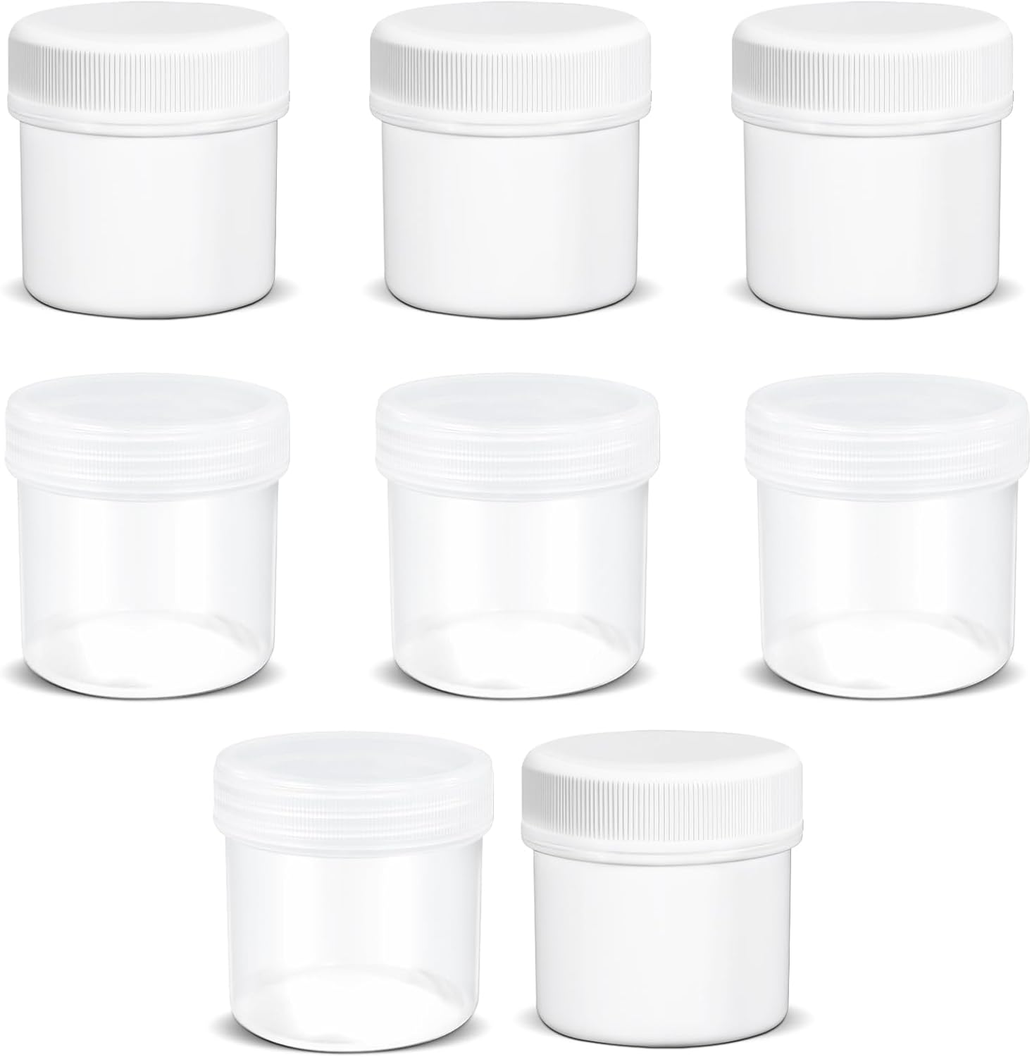 - Attentive Service: What you will get is a set of 8 pcs of 1 oz empty plastic jars with lids. We also offer excellent service. If you have any questions or concerns, contact us, and we'll assist you promptly