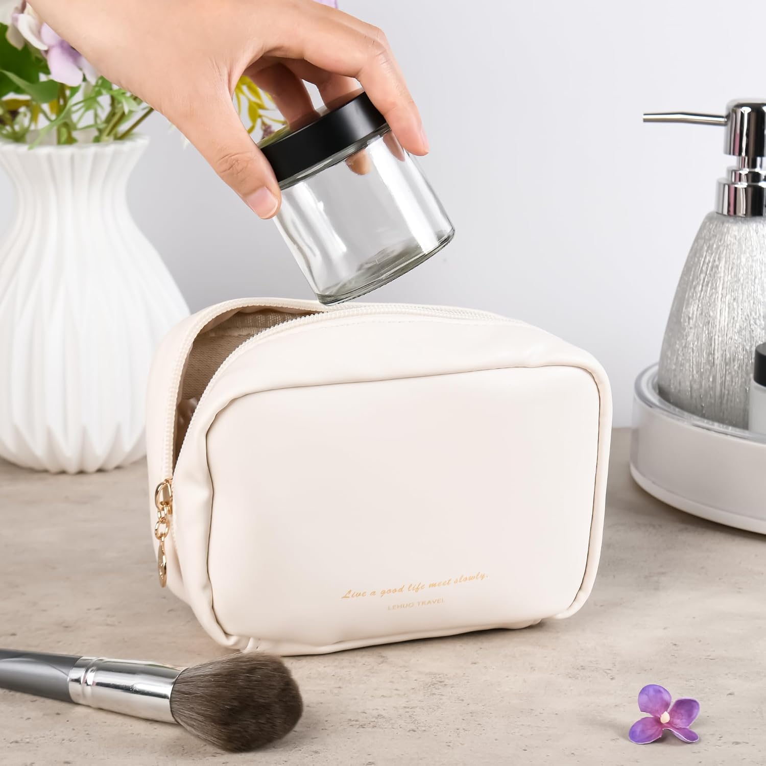 - 【Travel-Ready & Mess-Free】fits in purses and toiletry bags. Threaded lids prevent slipping, while raised jar bottoms protect against spills – ideal for gym, flights, or camping trips.