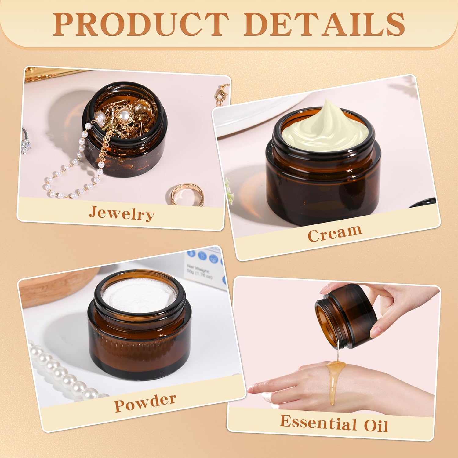 - 【Pro-Grade Organization】 Elevate your brand with luxury jars! Amber/black jars protect premium formulations, while clear jars showcase product purity. Compatible with label printers for professional branding – loved by estheticians and indie beauty brands!