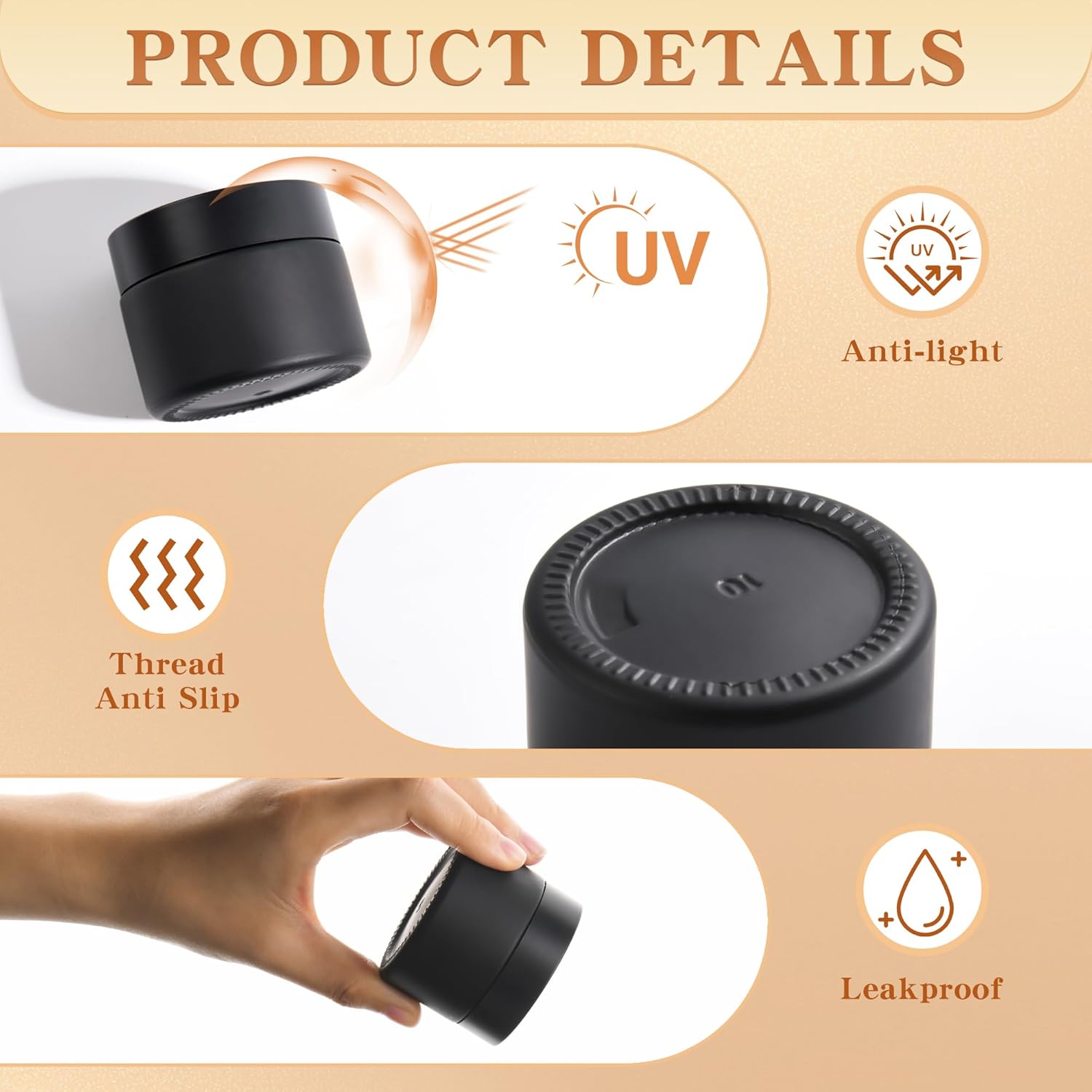 - 【Premium Airtight Glass Jars】 Crafted with thick borosilicate glass and black phenolic lids, these jars provide 100% leakproof protection. Inner silicone liners block air/moisture, ideal for light-sensitive CBD creams, organic balms, and essential oils.