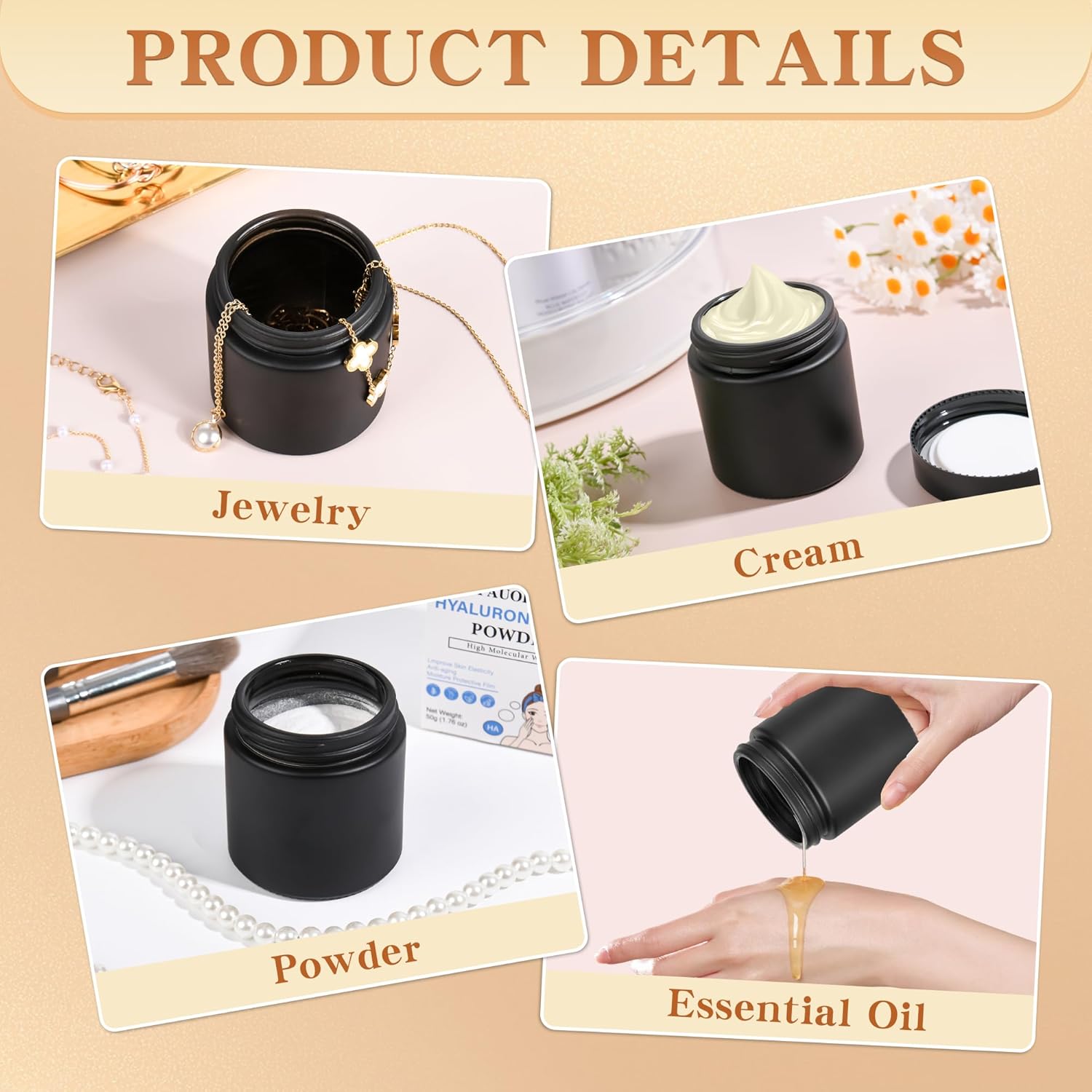 - 【Premium Airtight Glass Jars】 Crafted with thick borosilicate glass and black phenolic lids, these jars provide 100% leakproof protection. Inner silicone liners block air/moisture, ideal for light-sensitive CBD creams, organic balms, and essential oils.