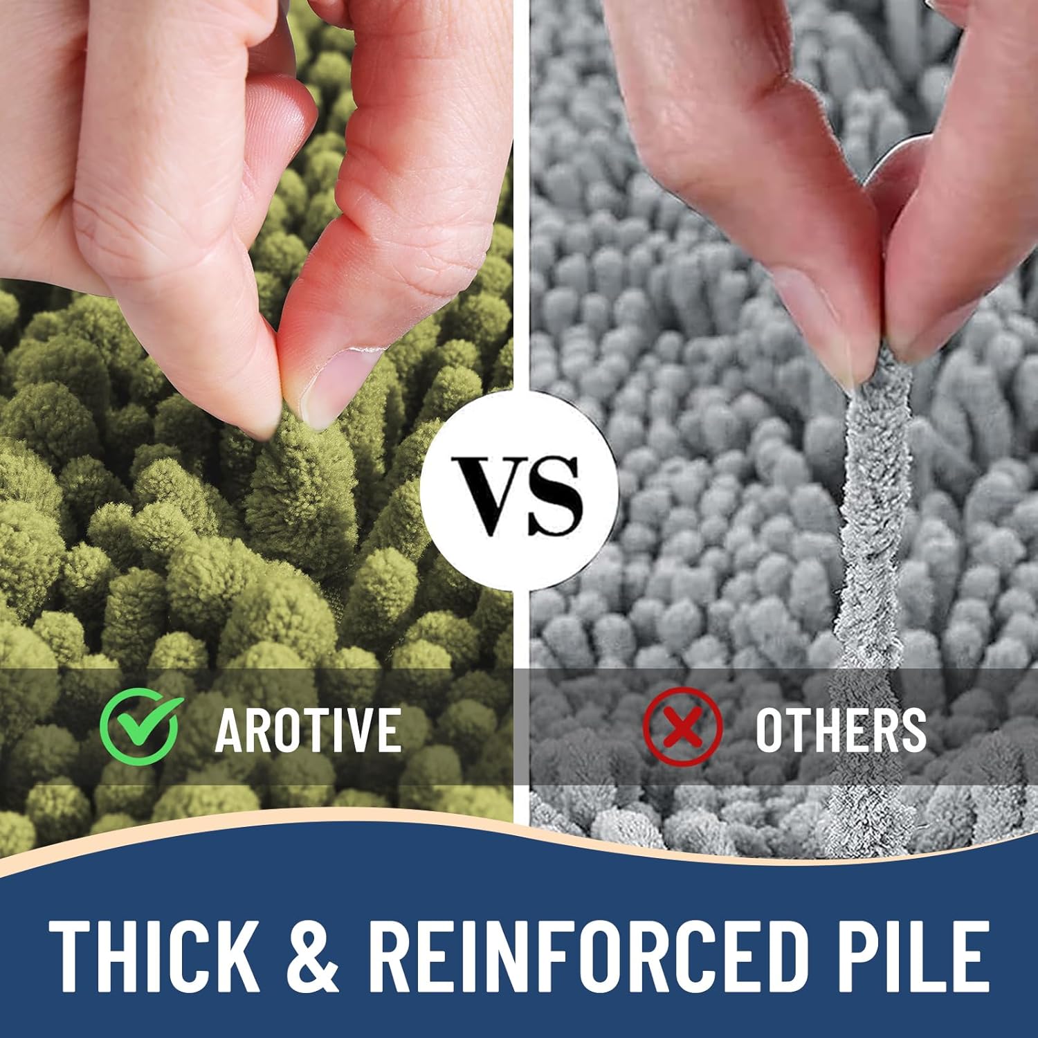 Arotive Luxury Chenille Bathroom Rug Mat, Extra Soft Thick Absorbent Shaggy Bath Rugs, Non-Slip Machine Wash Dry, Plush Bath Mats for Bathroom, Shower and Tub, 47x24, Willow Green