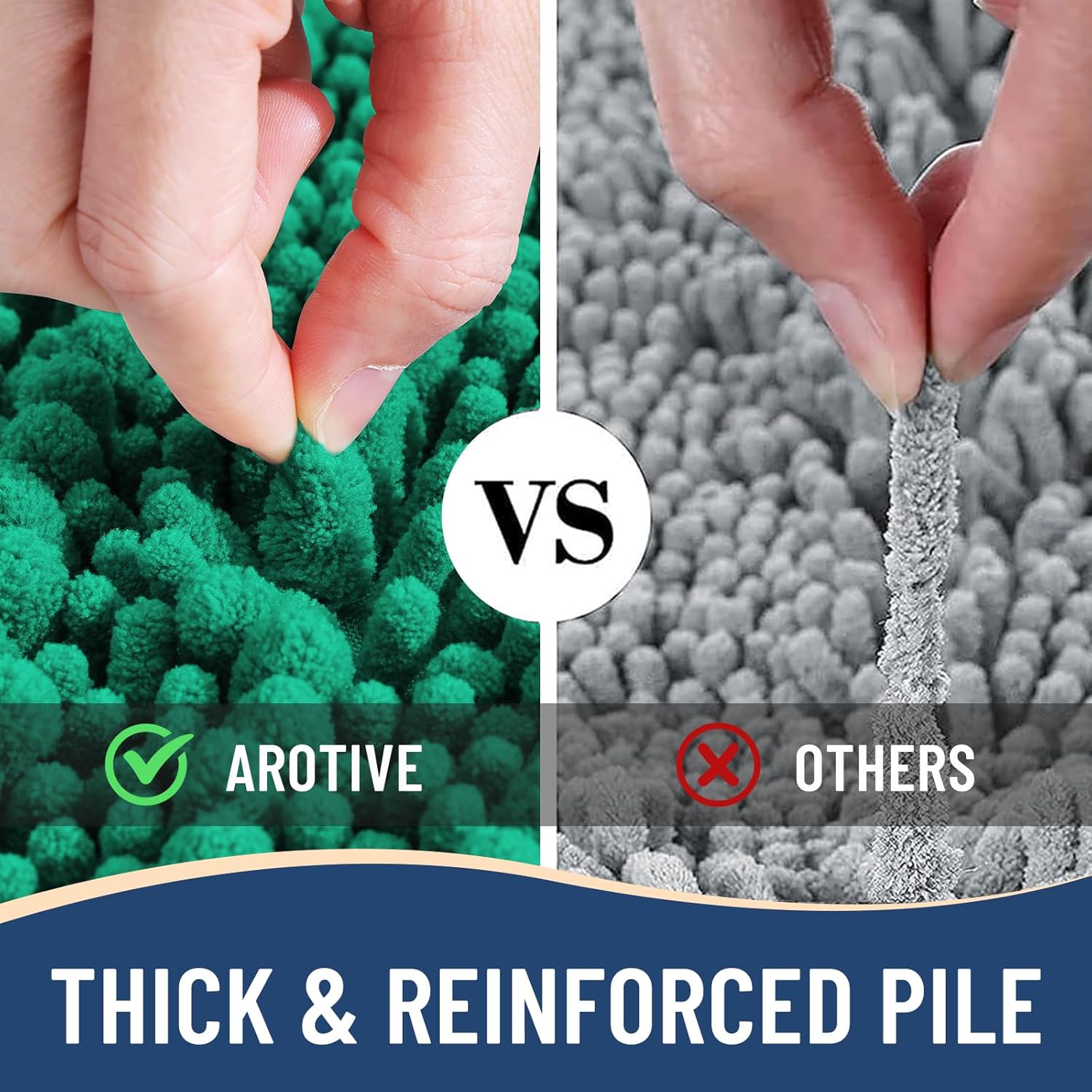 - Anti-Skid Backing: Arotive chenille bathroom rugs feature a non-slip bottom consisting of sturdy mesh PVC material that stops the bath mat from shifting and skidding. The middle layer is 4 mm memory foam, which can let you feel more comfortable when wrapping into the rugs. WARNING: Place bath mat on CLEAN DRY FLAT FLOOR ONLY. Water under bath rug can cause it to slip. Always keep the bottom of bath rug dry