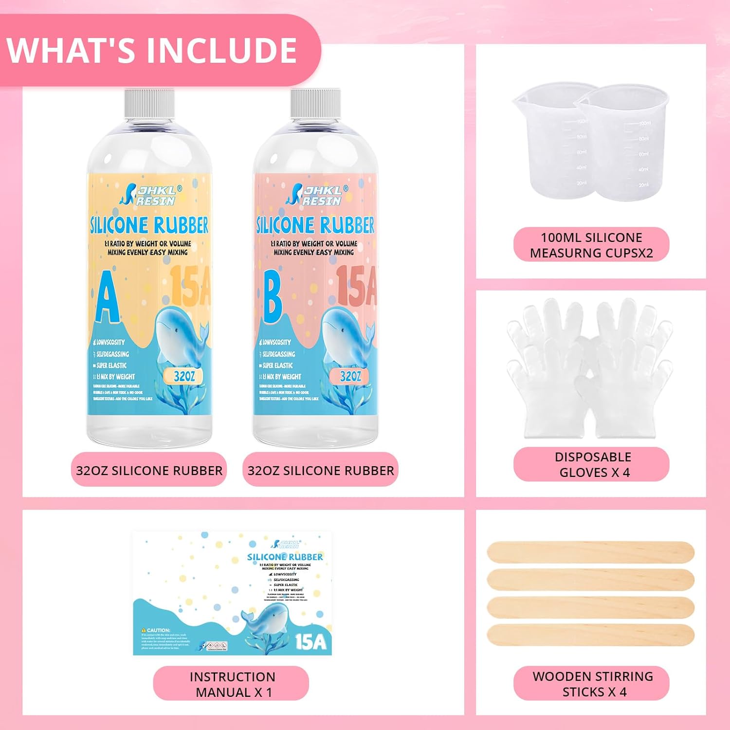 JHKL RESIN Silicone Mold Making Kit,64OZ Platinum Liquid Silicone Rubber for Mold Maker,15A Molds,Mix Ratio 1:1 Rubber Mold Making Kit, Ideal for Casting 3D Resin Molds