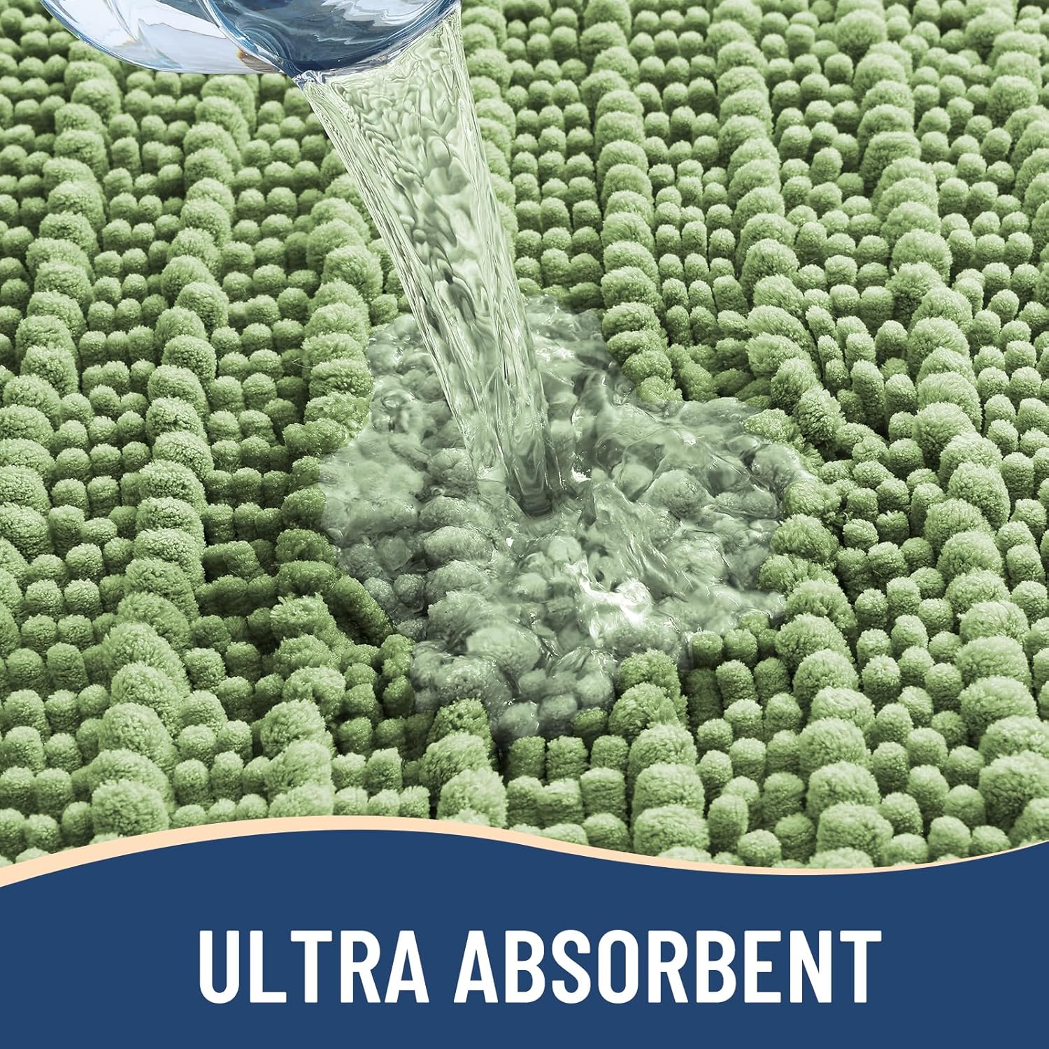 Arotive Luxury Chenille Bathroom Rug Mat, Extra Soft Thick Absorbent Shaggy Bath Rugs, Non-Slip Machine Wash Dry, Plush Bath Mats for Bathroom, Shower and Tub, 30x17, Sage Green