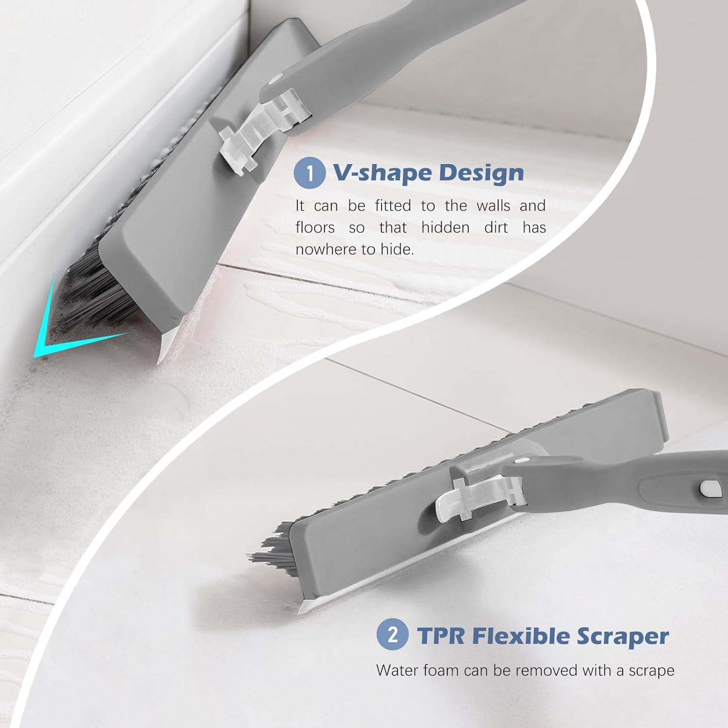 - V-SHAPED HARD BRISTLES: The cleaning brush has a “V” shaped brush head for easy insertion into narrow grout lines, hard to reach nooks and crannies. The sturdy stiff bristles are very effective at removing dirt, stains and spots.