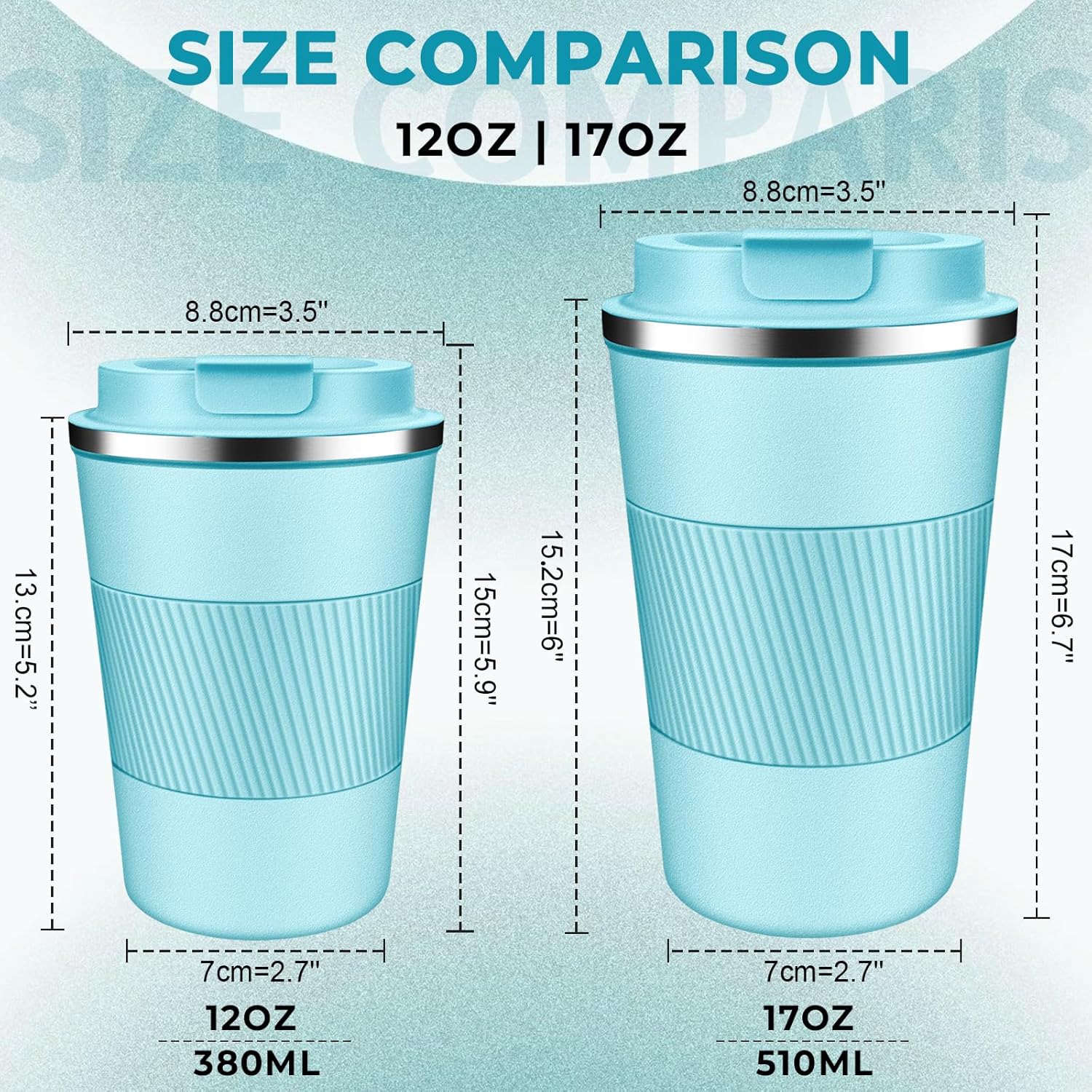 - Perfect Fit for Coffee Machine & Car Cupholder: Coffee travel mug available in 2 sizes-12oz or 17oz, both sizes fit under most coffee machine and car cup holders, available in multiple colors for home, office, on-the-go, or travel